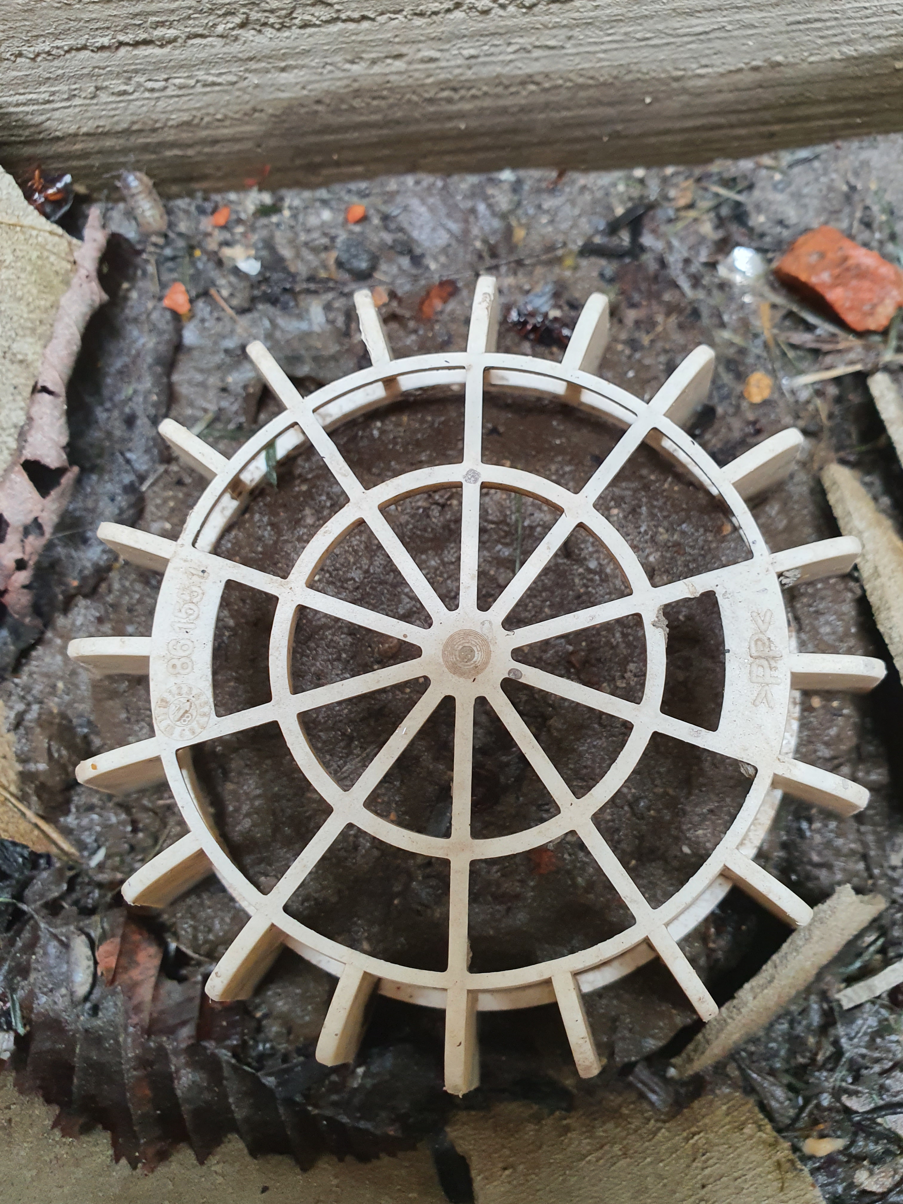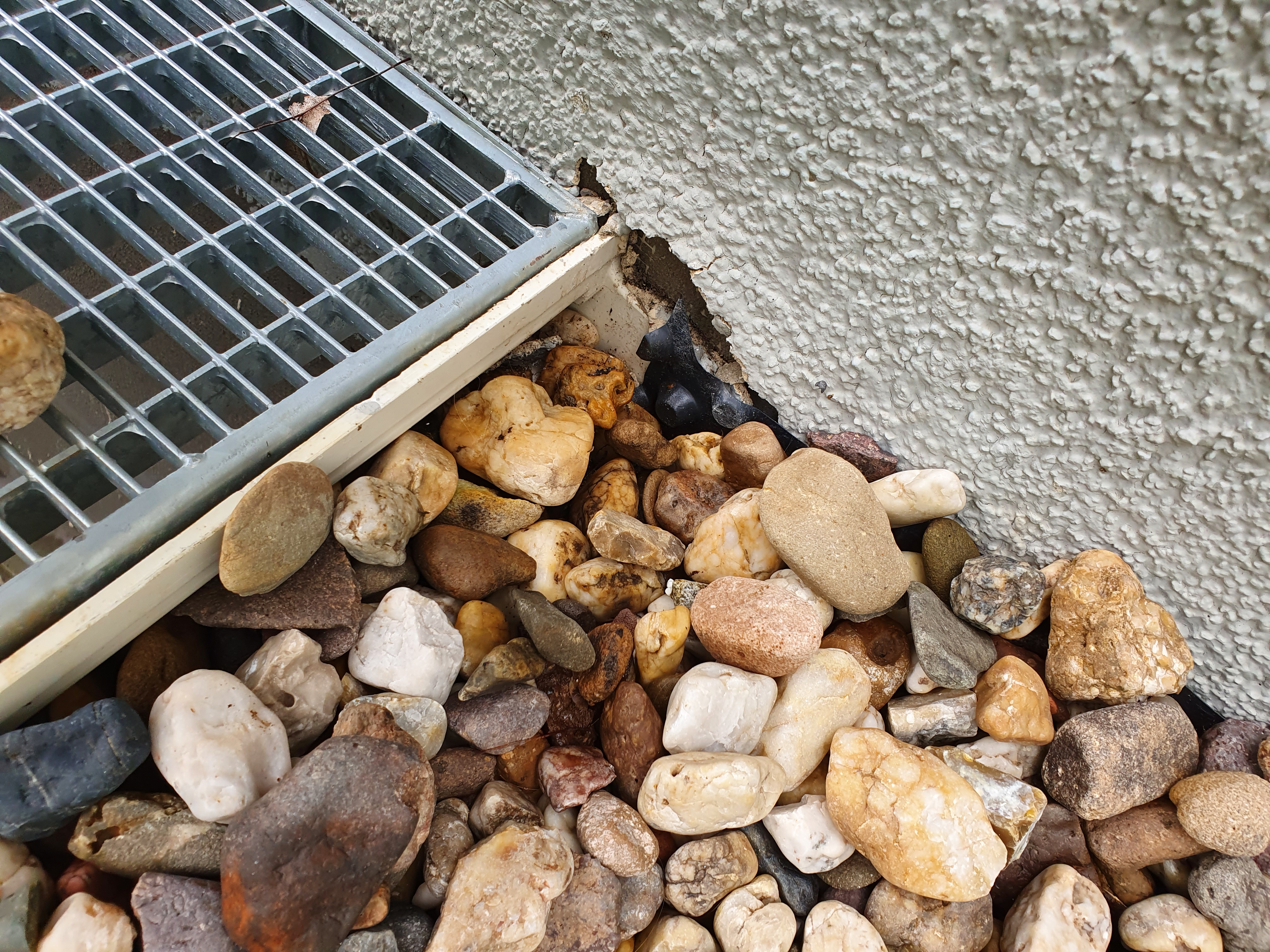 Dranageaufsatz vor dem Haus A eingebrochen sowie die Betonrechtecksteine gebrochen