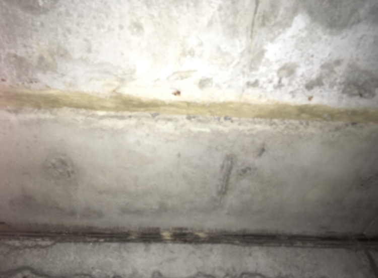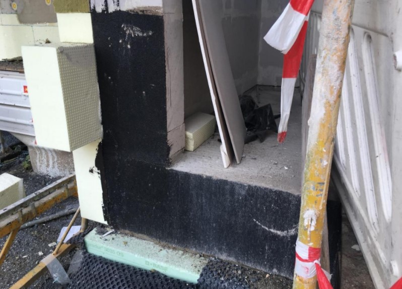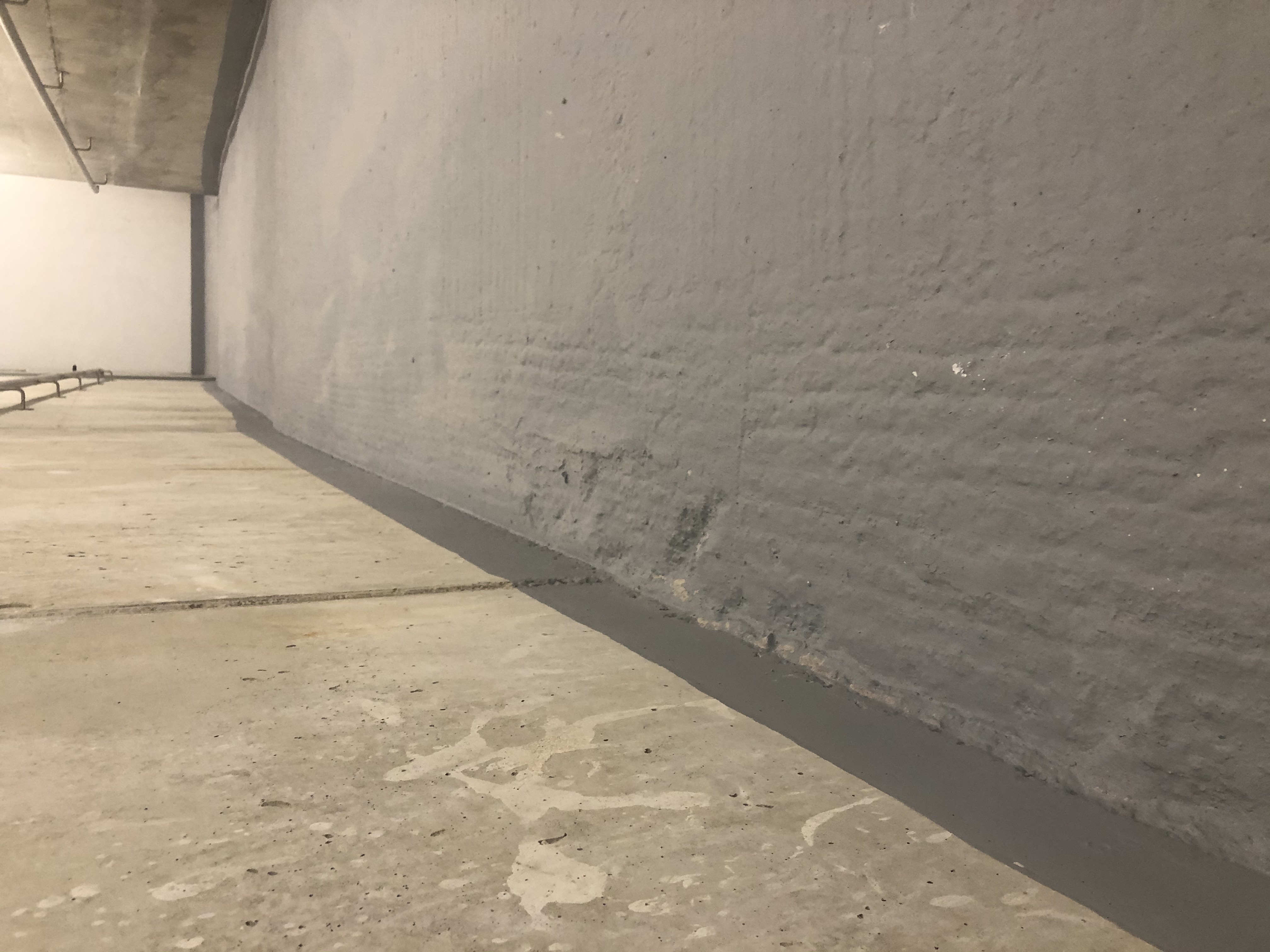 Bereits im Rohbau wurde hier am 08.11.2019 festgestellt: Übergänge am Boden zwischen WU Beton und Ziegelwerk sind unsauber bzw. unvollständig ausgeführt worden. Die Abdichtung fehlt stellenweise. Die Dickbeschichtung ist somit nicht wie vorgeschrieben gleichmäßig und vollständig ausgeführt (keine Äußerung dazu von PI und Verweis auf Abnahme GET).