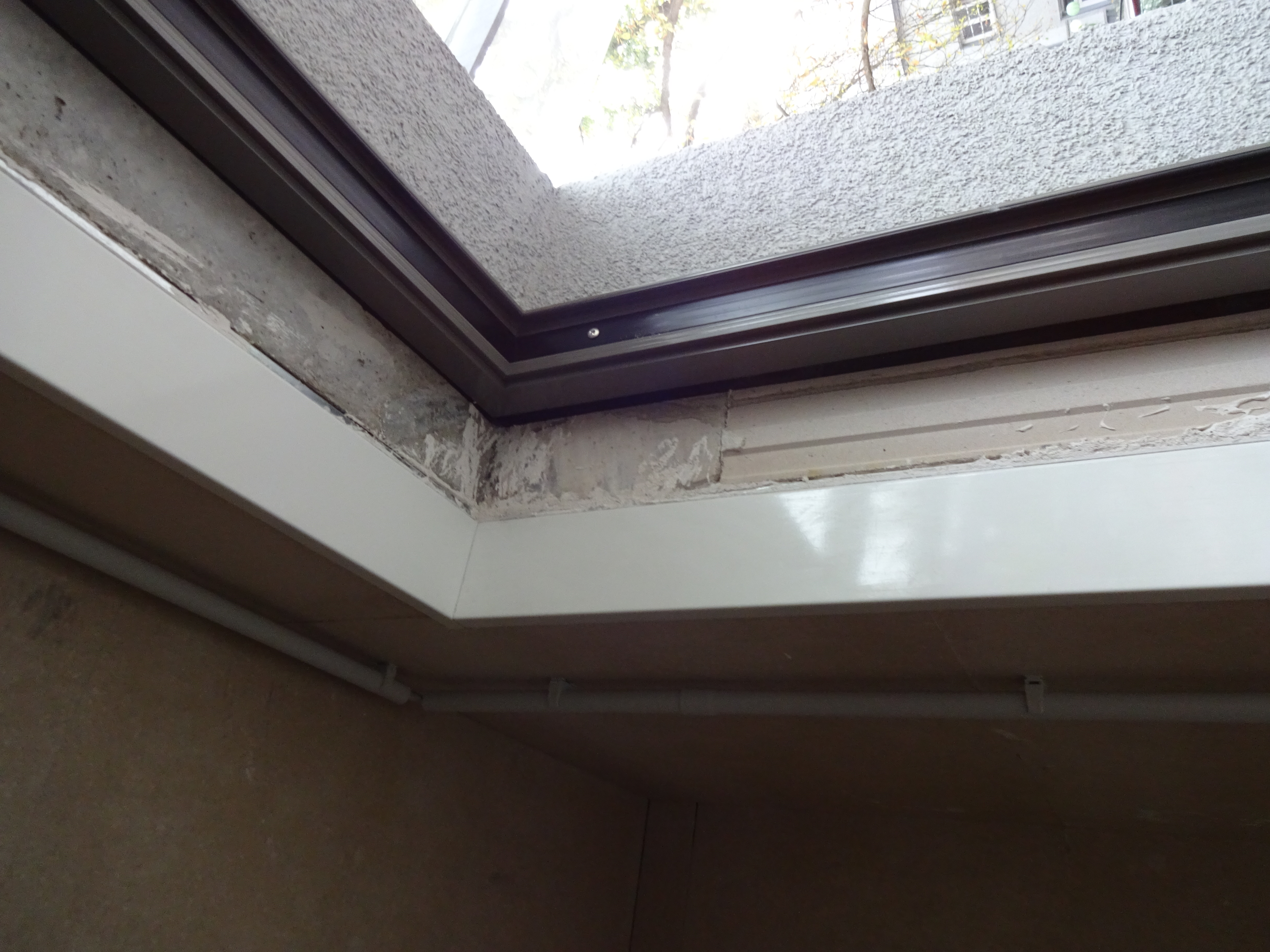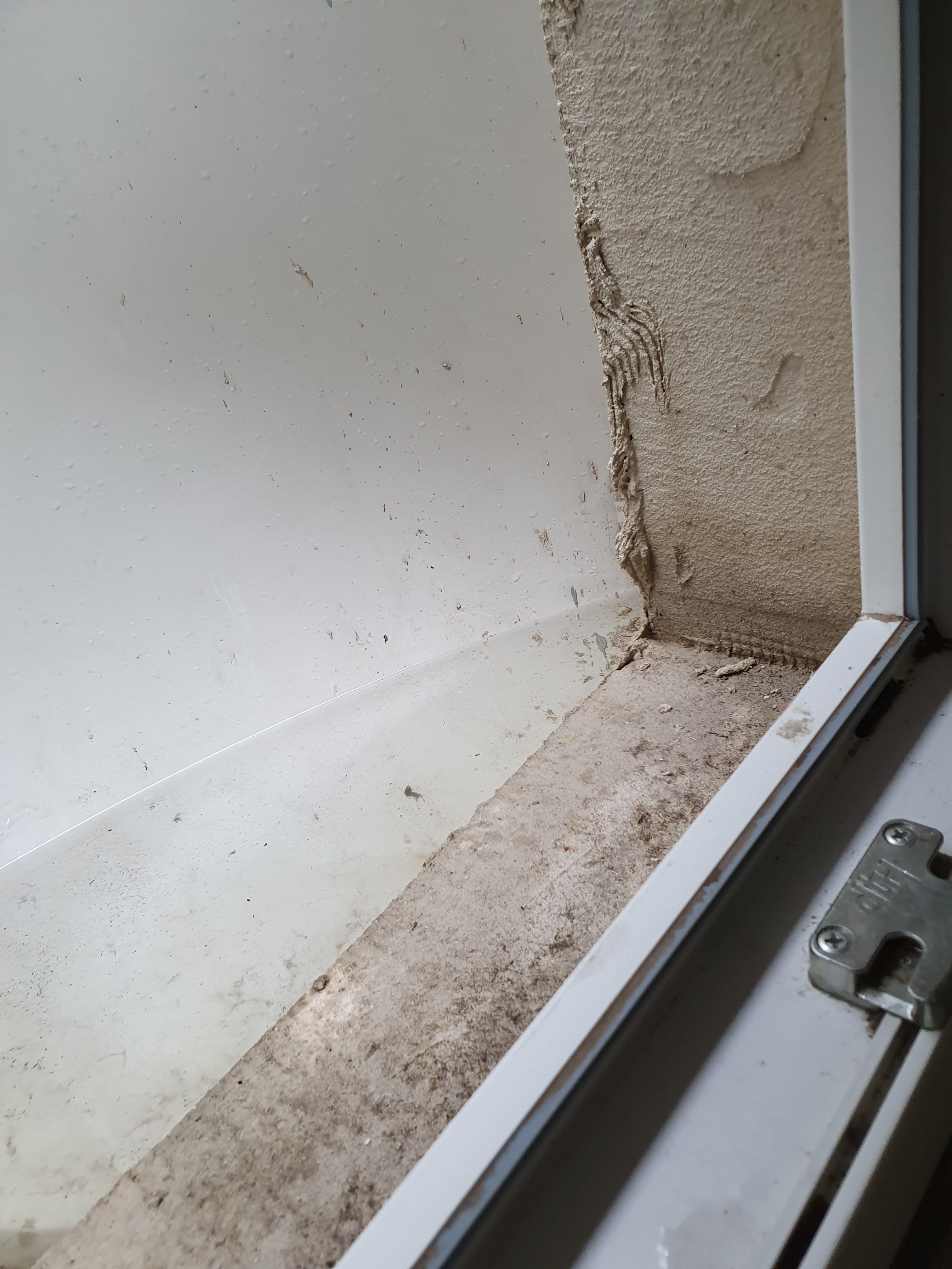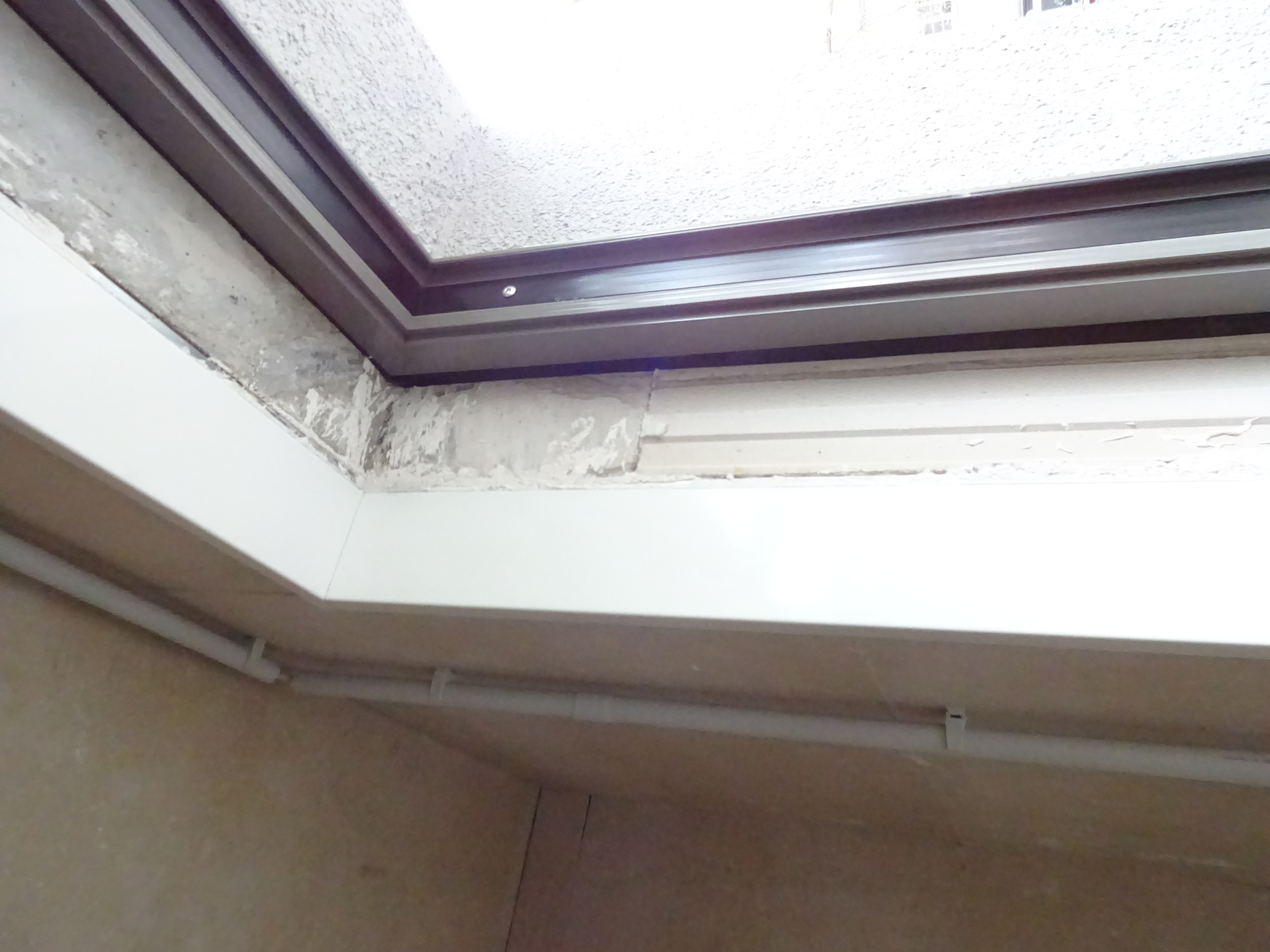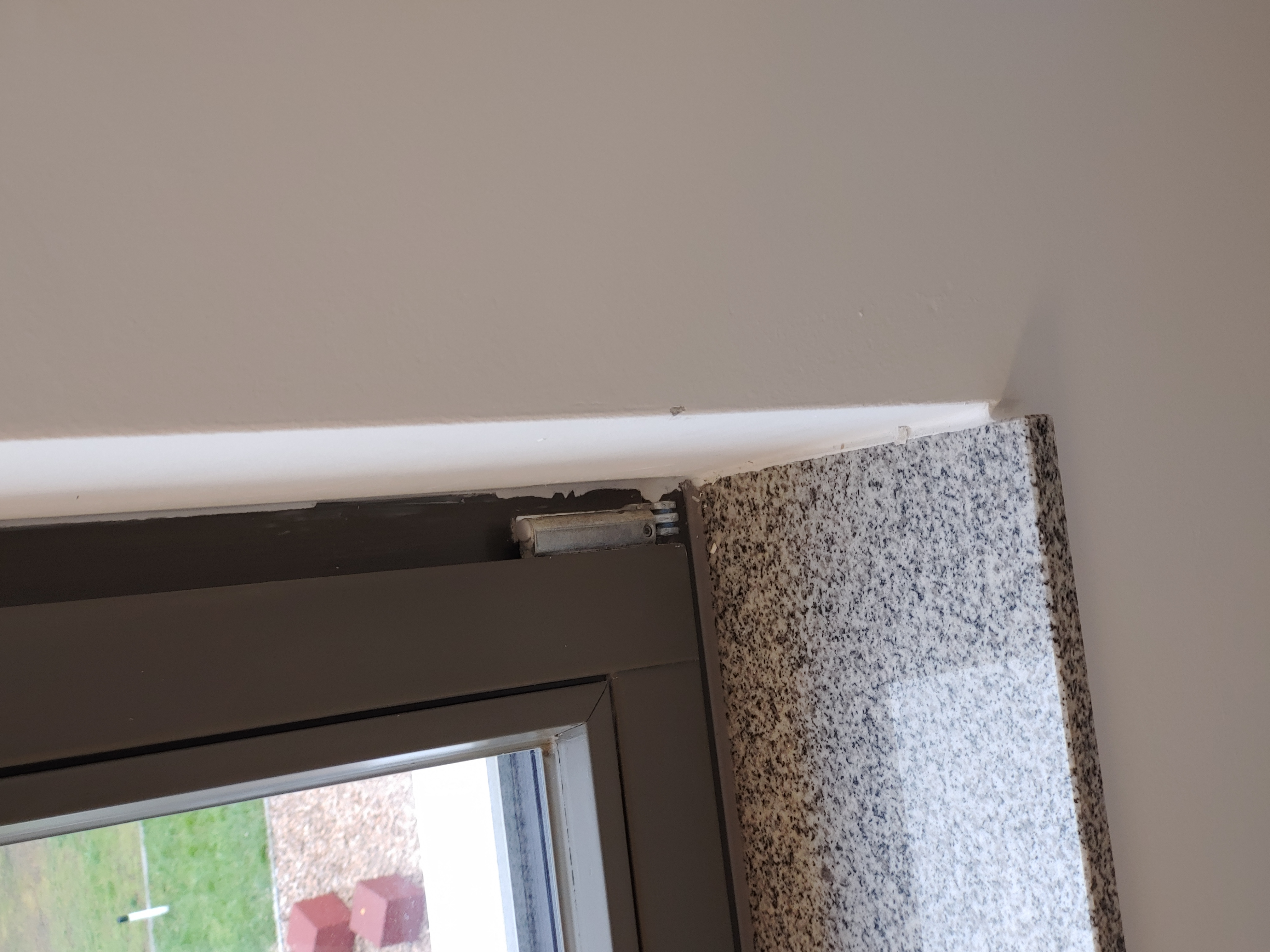 Fenster neben Hauszugang von 74d nach Starkregen undicht und mit sichtbarem Feuchtigkeitsschaden