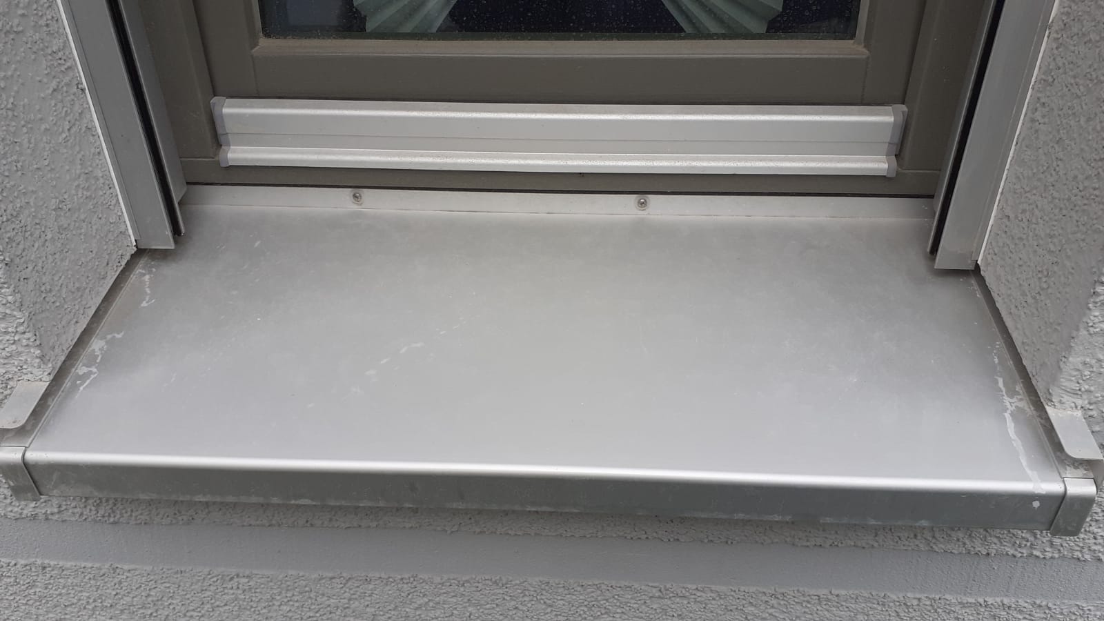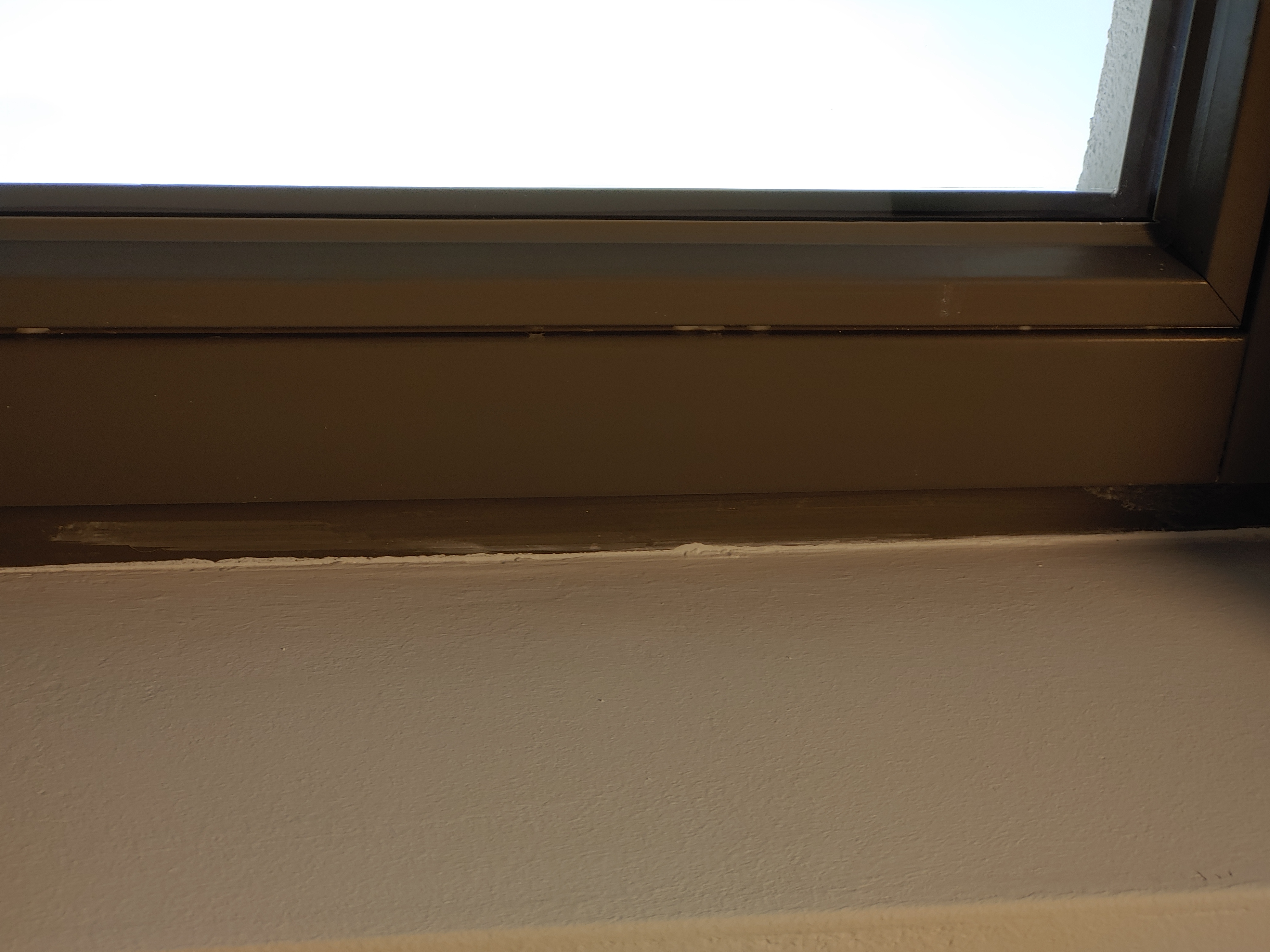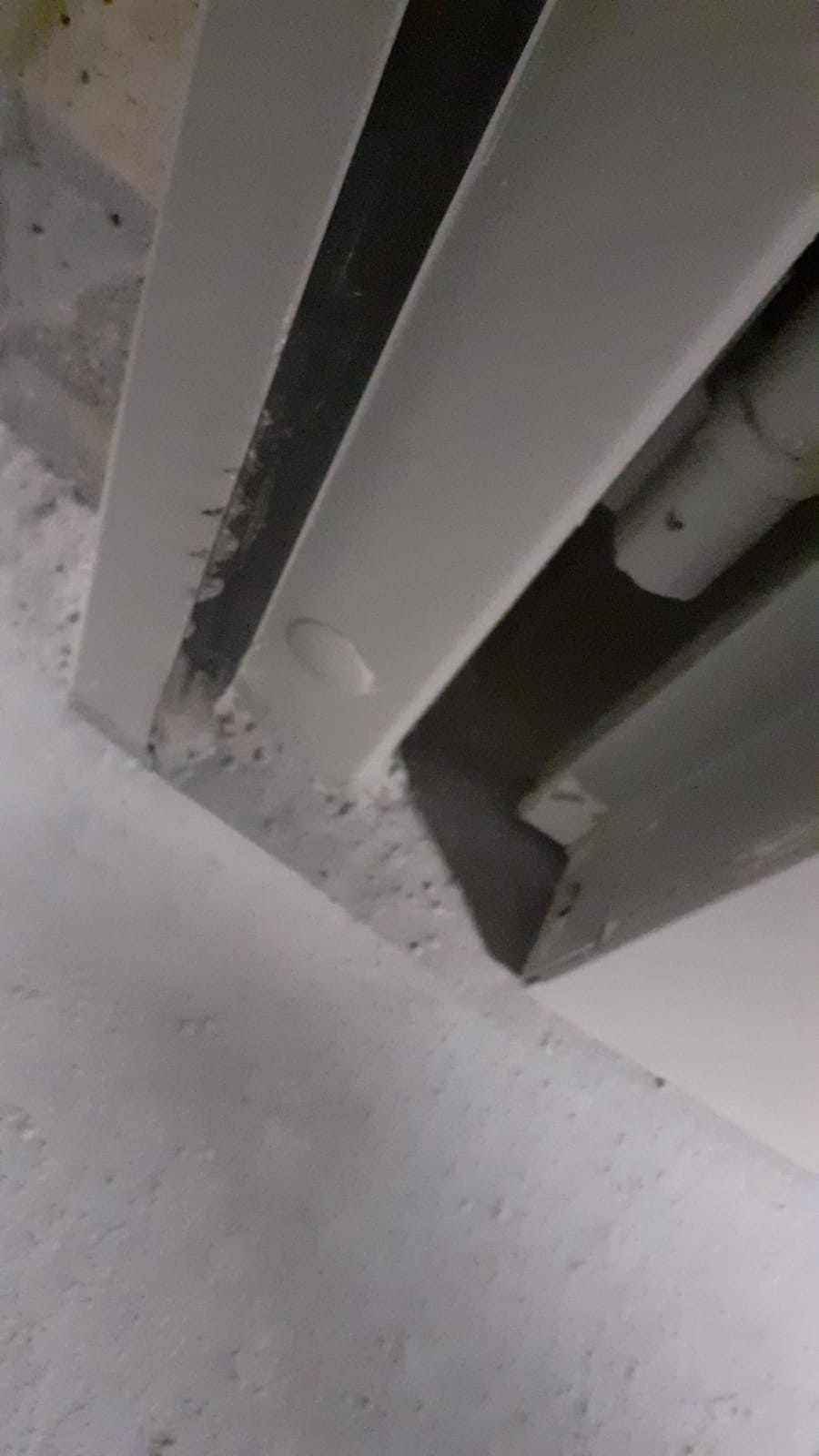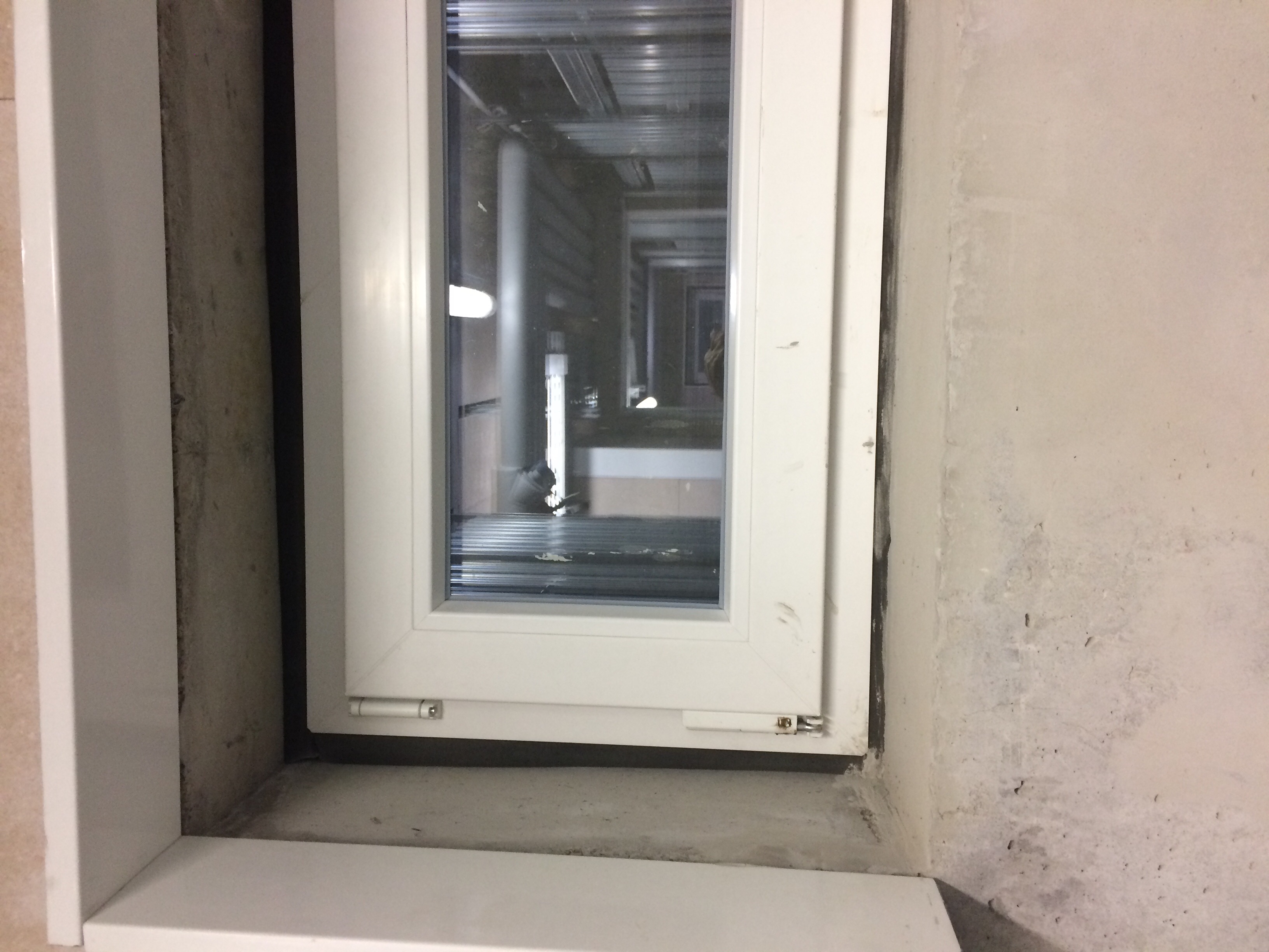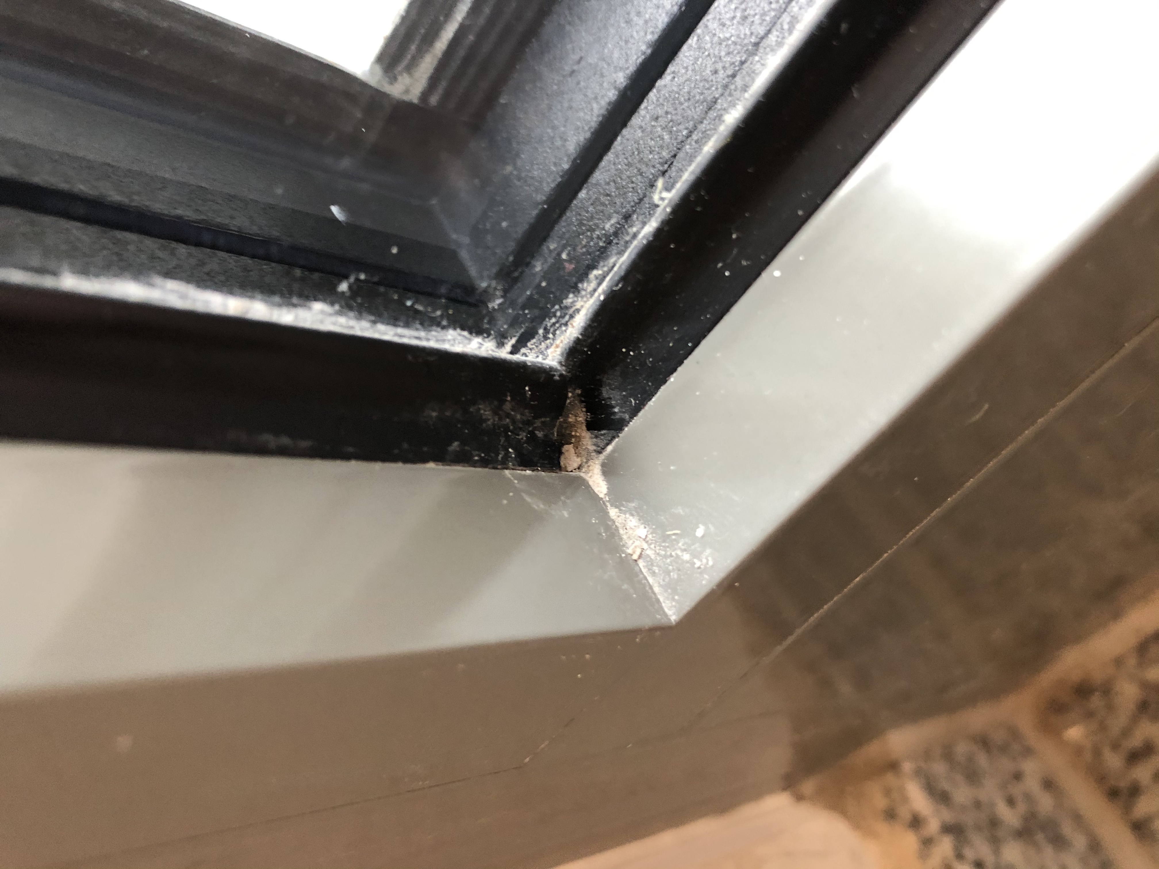 Fenster neben Hauszugang von 74d nach Starkregen undicht und mit sichtbarem Feuchtigkeitsschaden