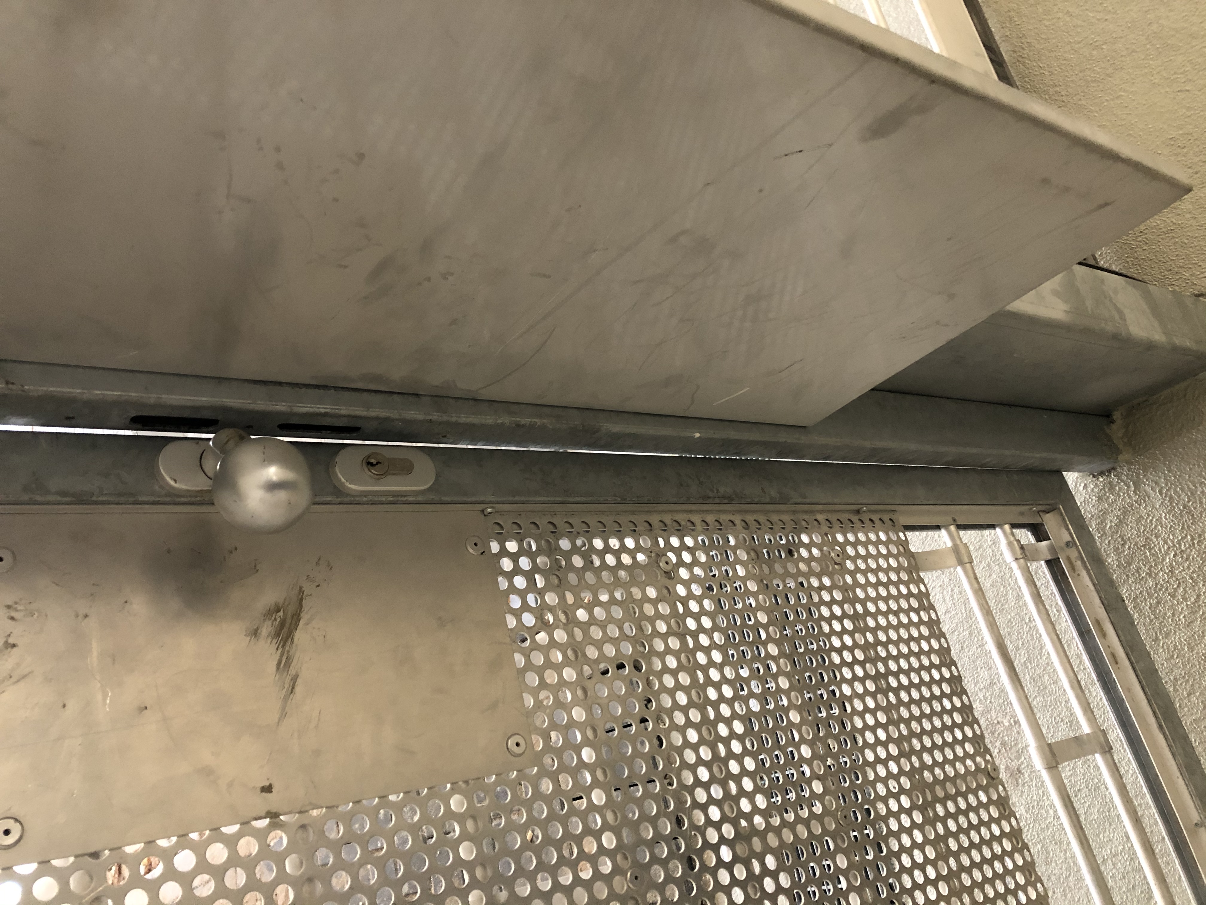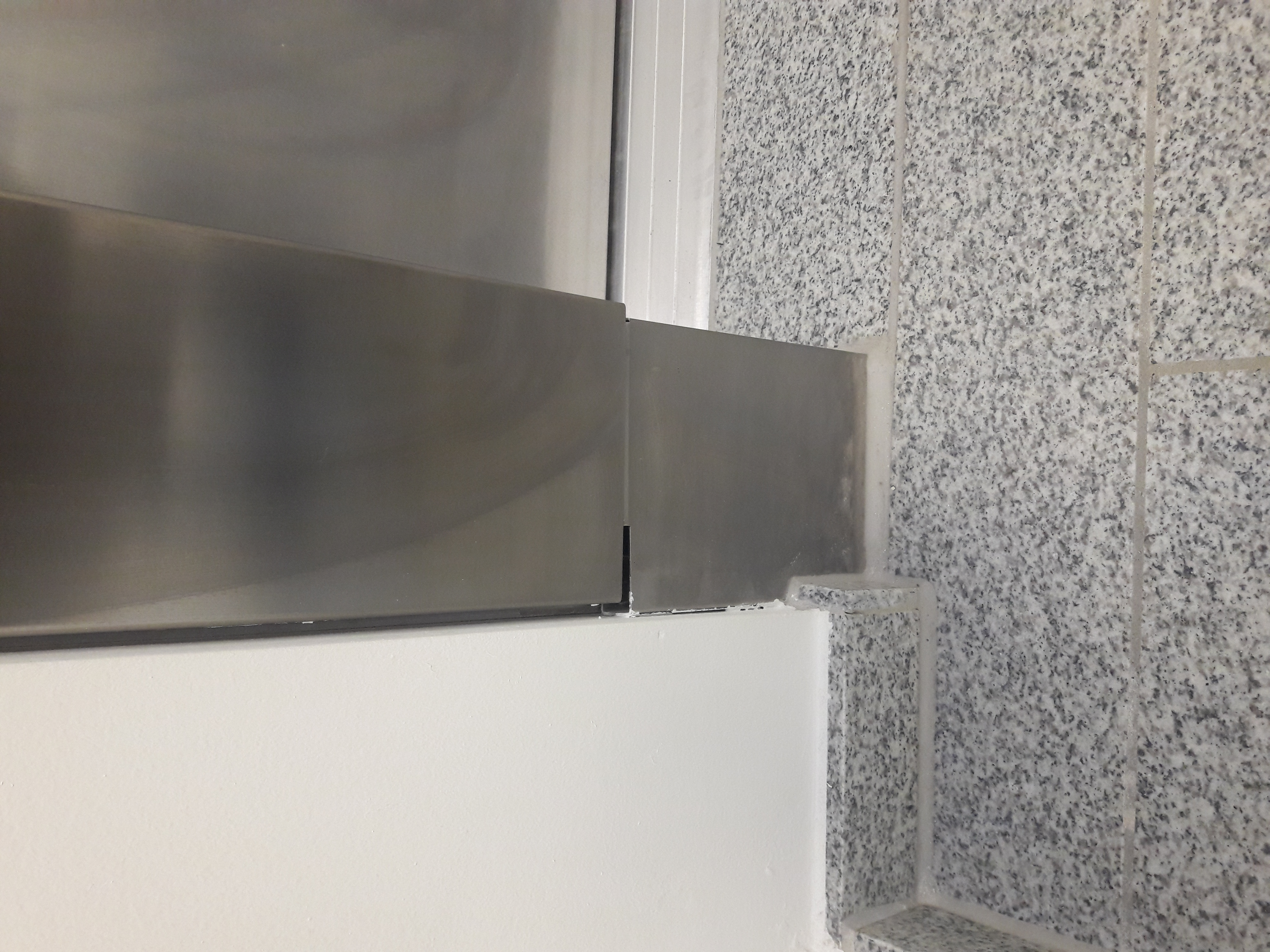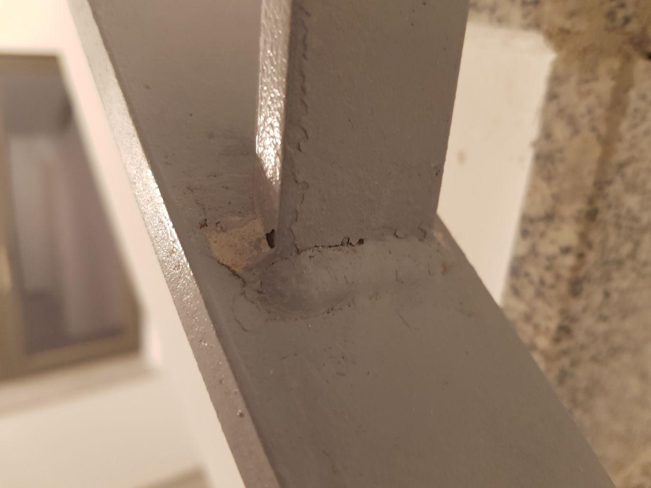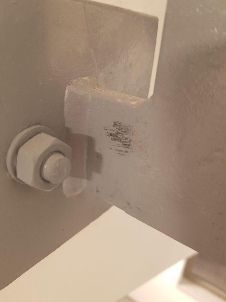 Außen am Fahrstuhl sind 2 Metallstücke falsch verschweißt