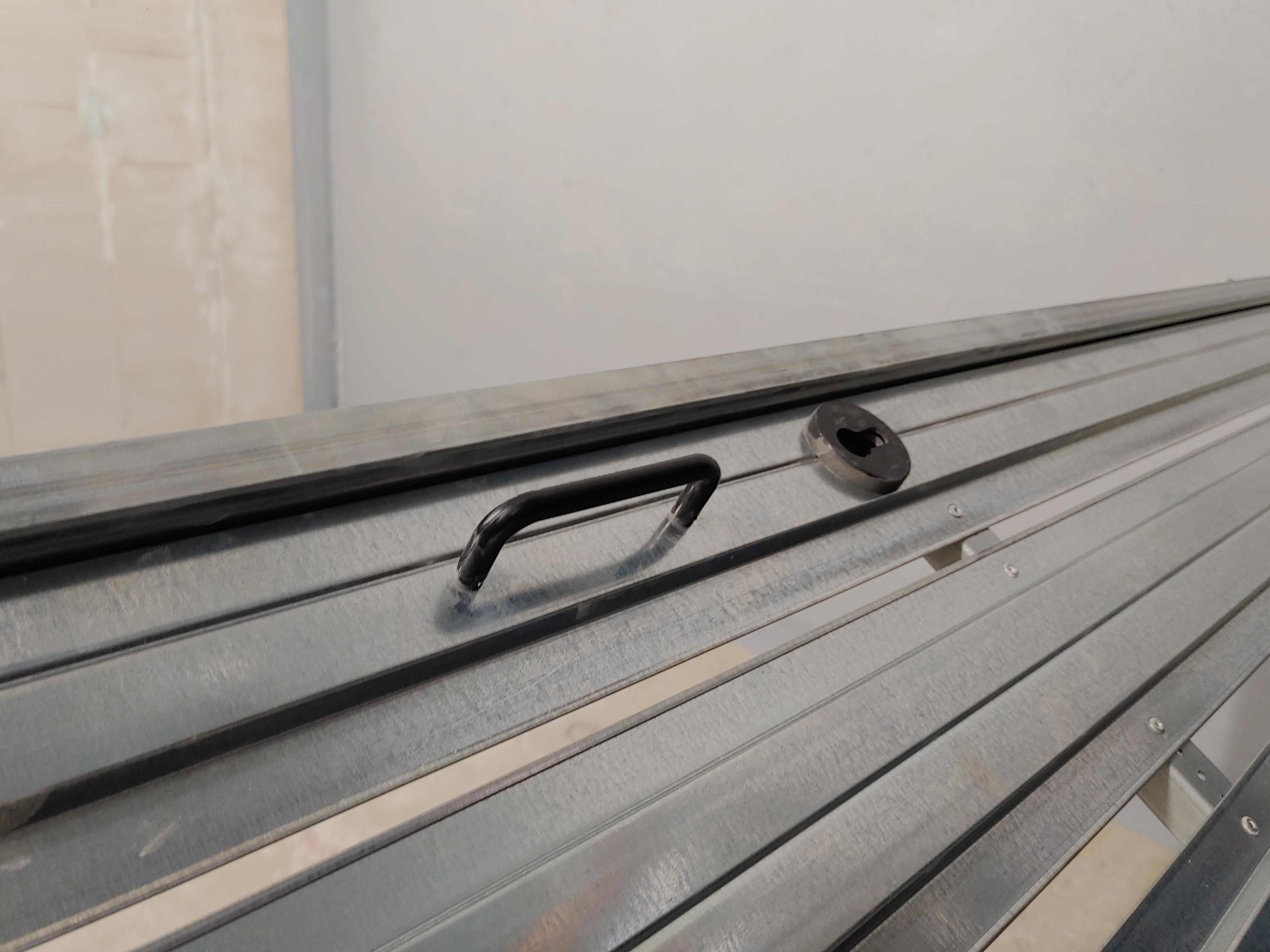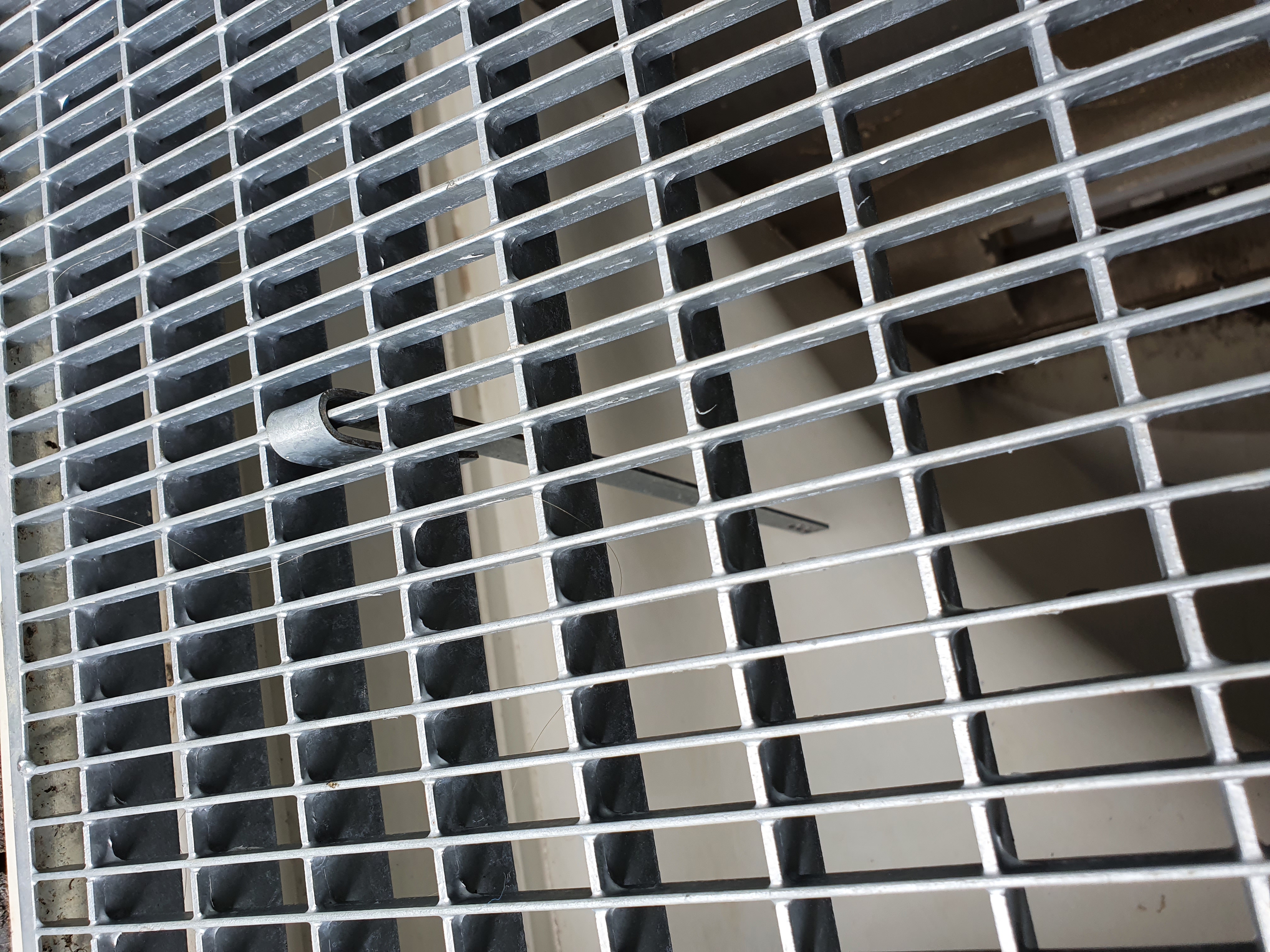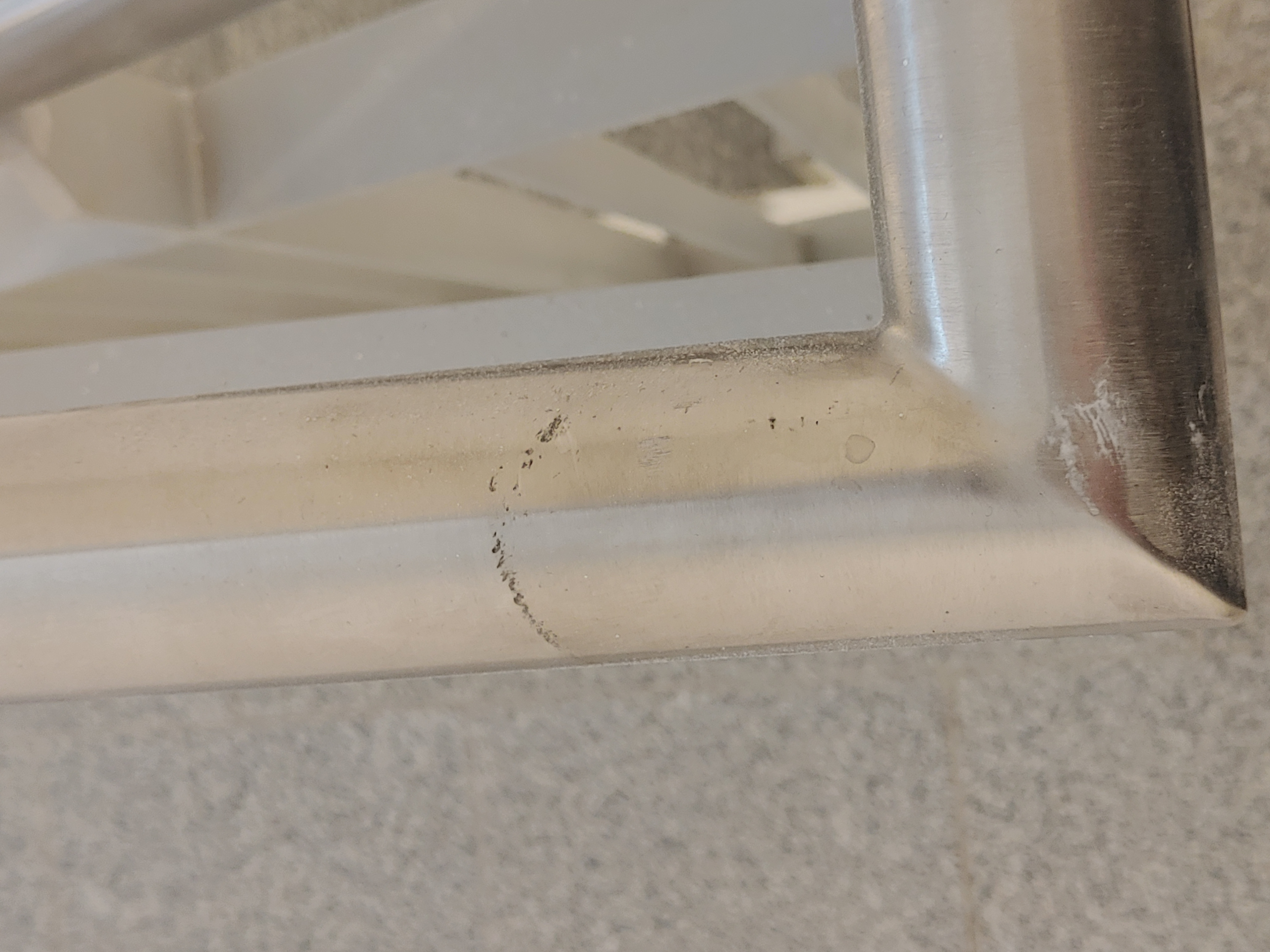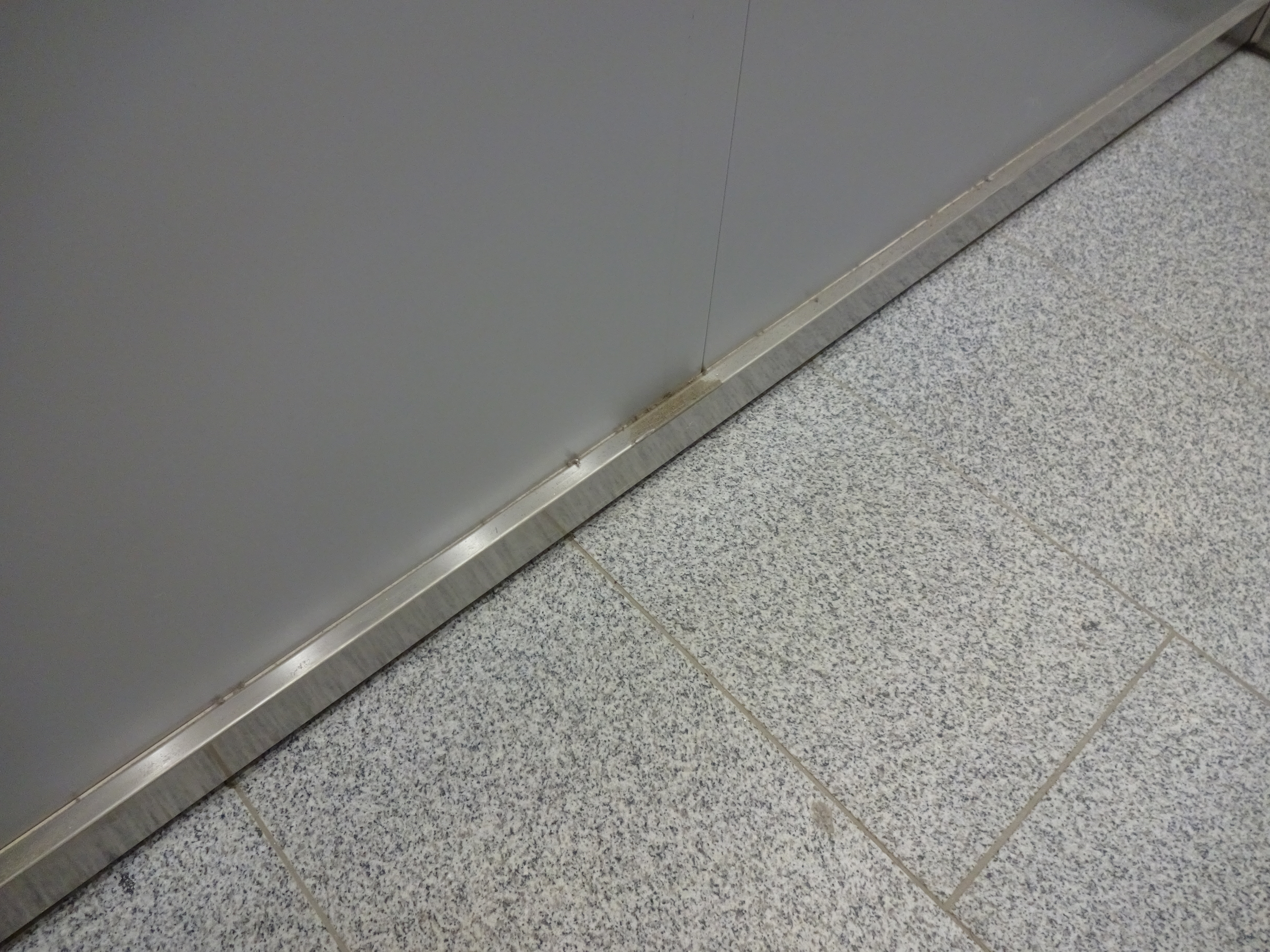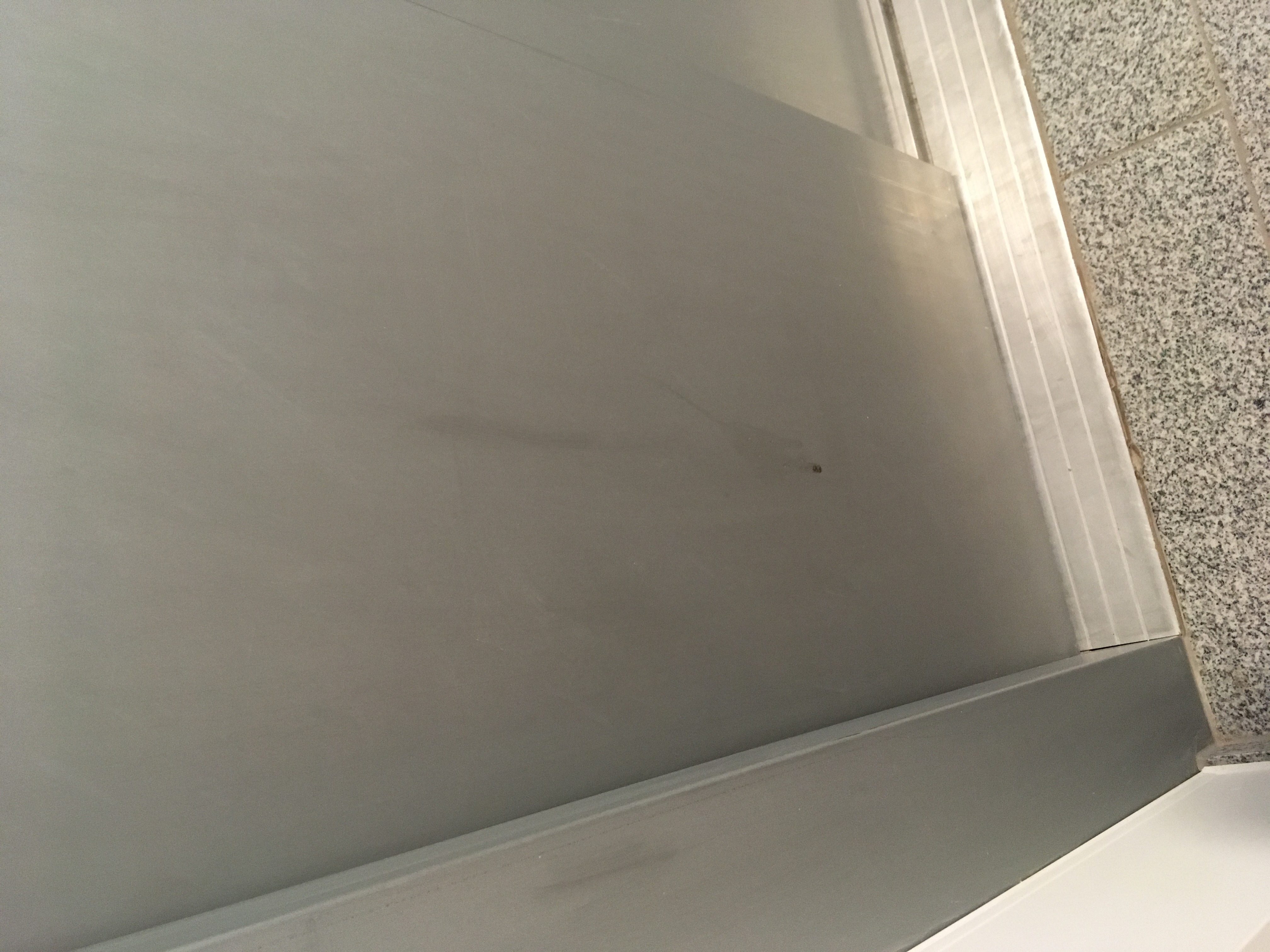 Außen am Fahrstuhl sind 2 Metallstücke falsch verschweißt