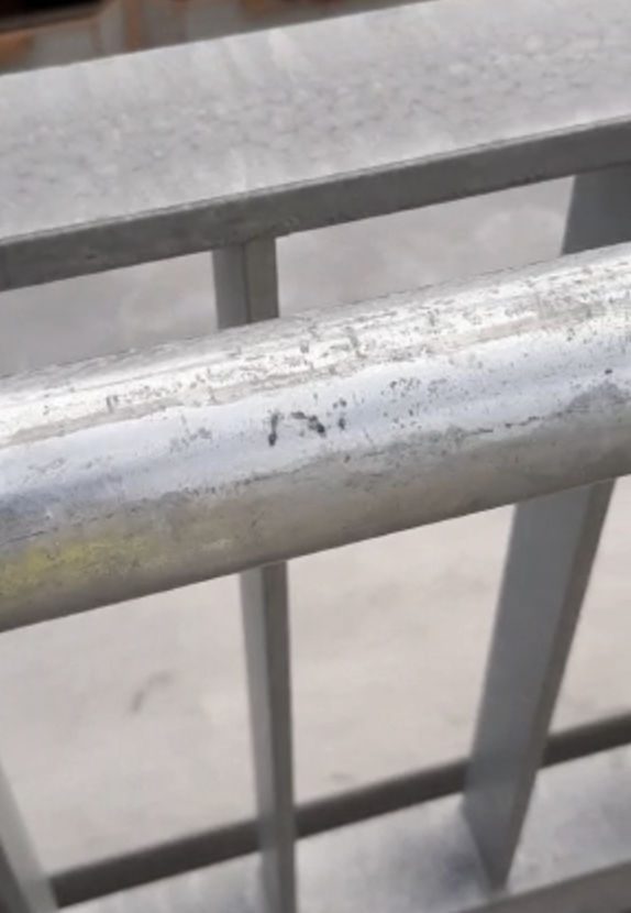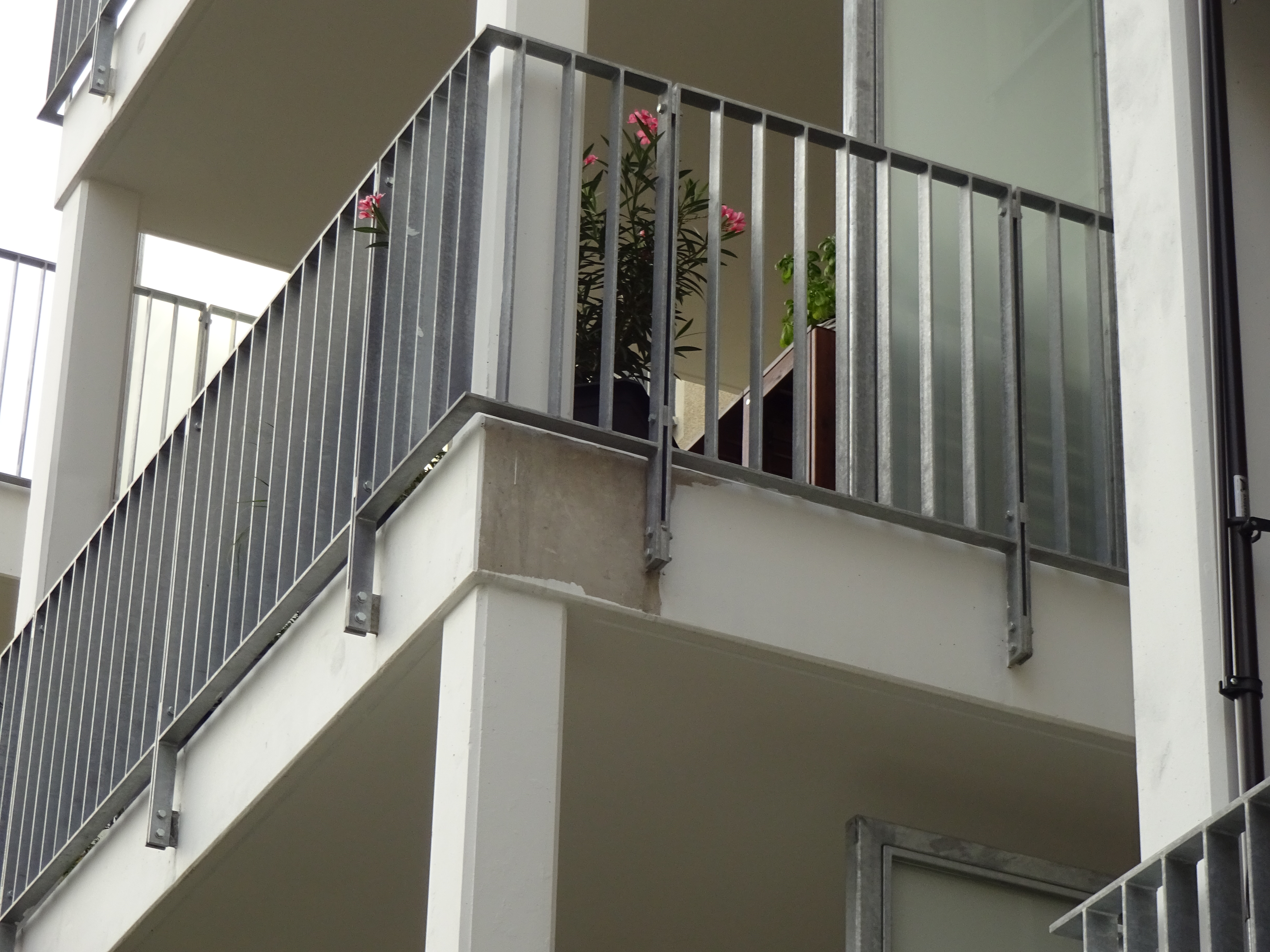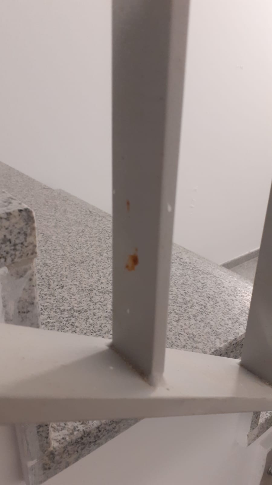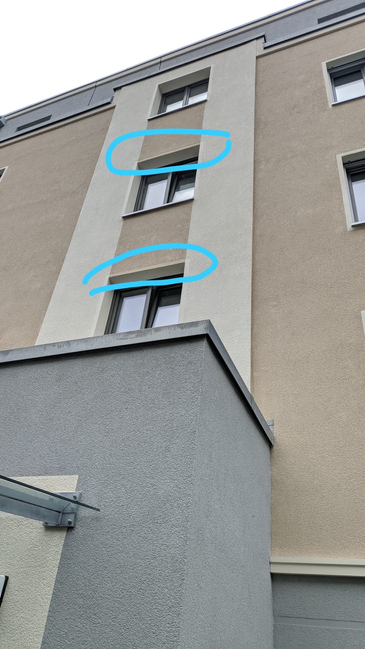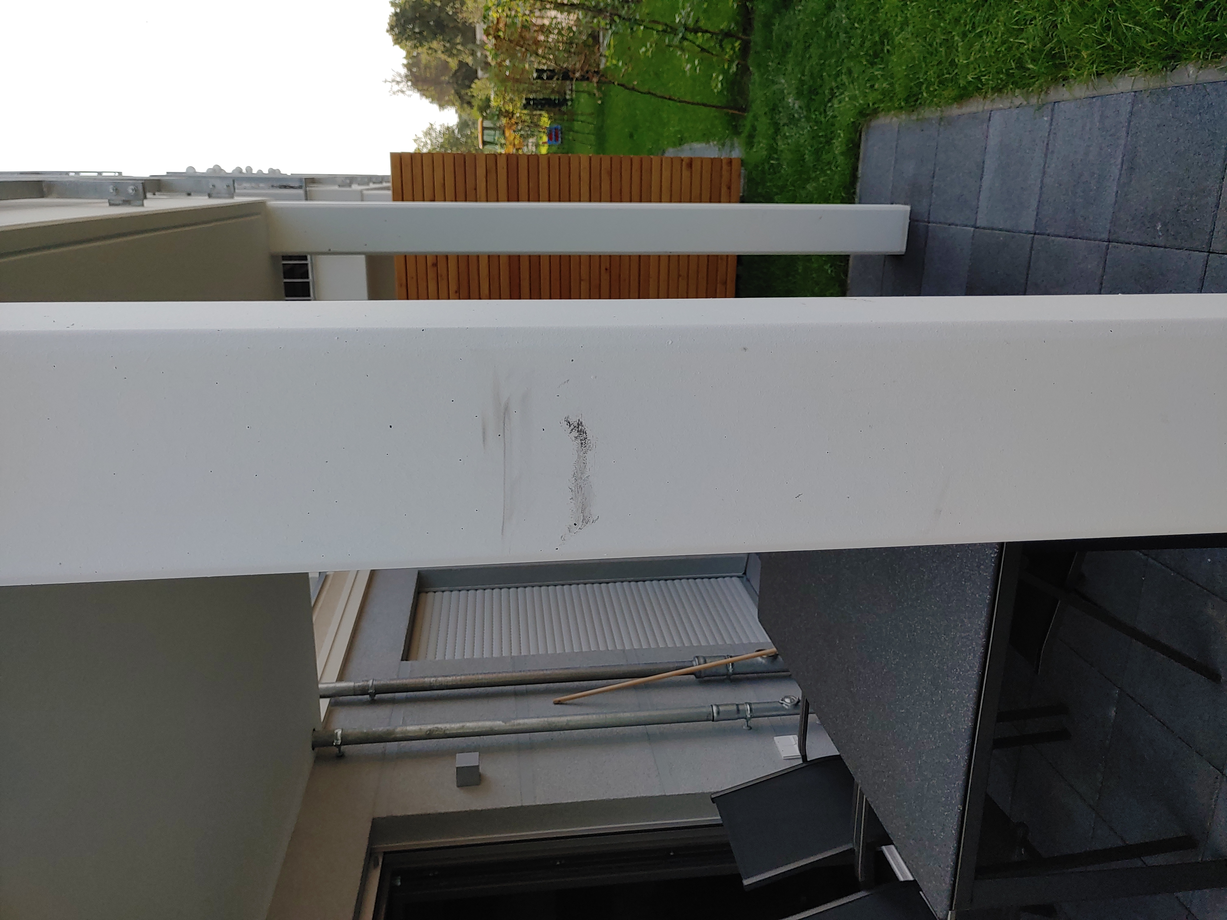 Die Balkonpfosten sind neu zu malern oder gründlichst zu reinigen. Es gibt diverseste Löcher und Dreckflecken.