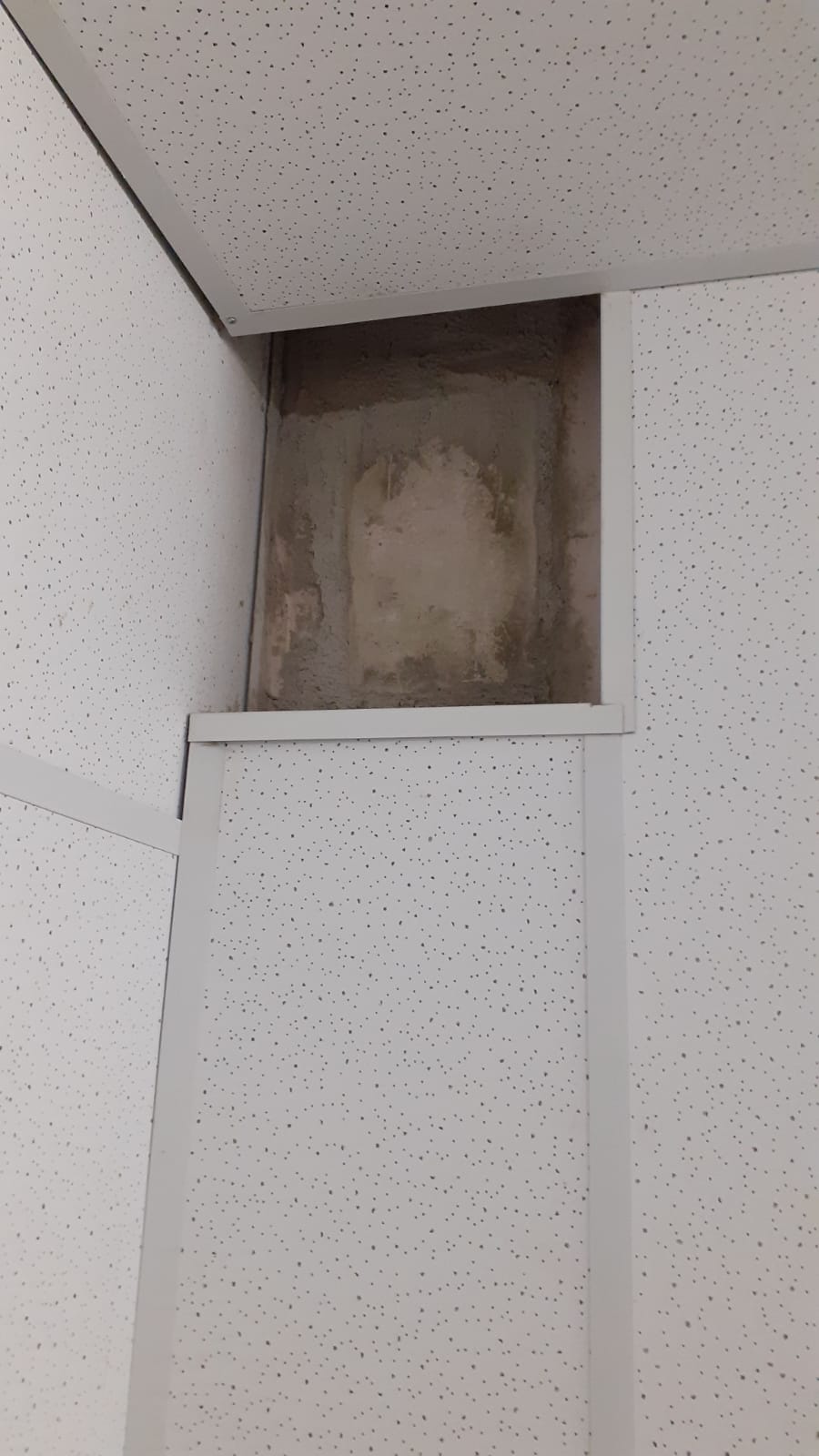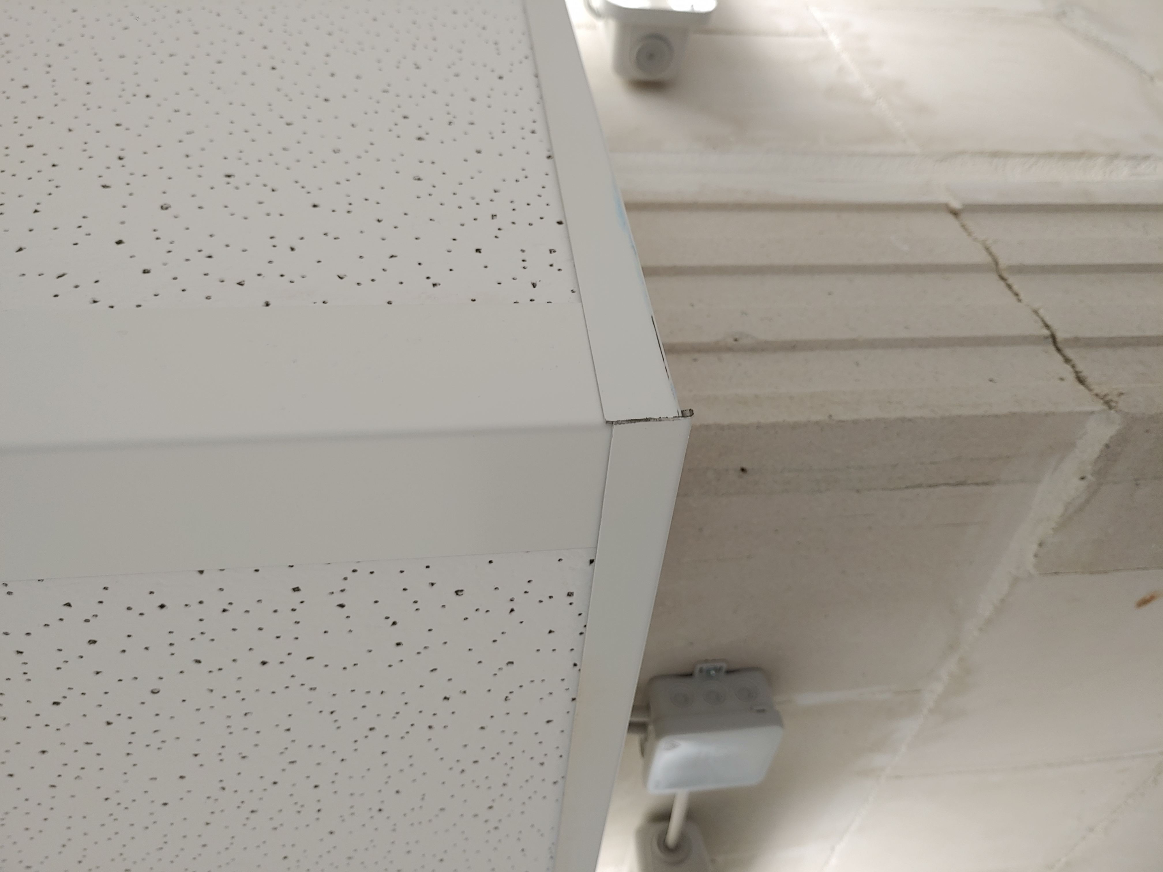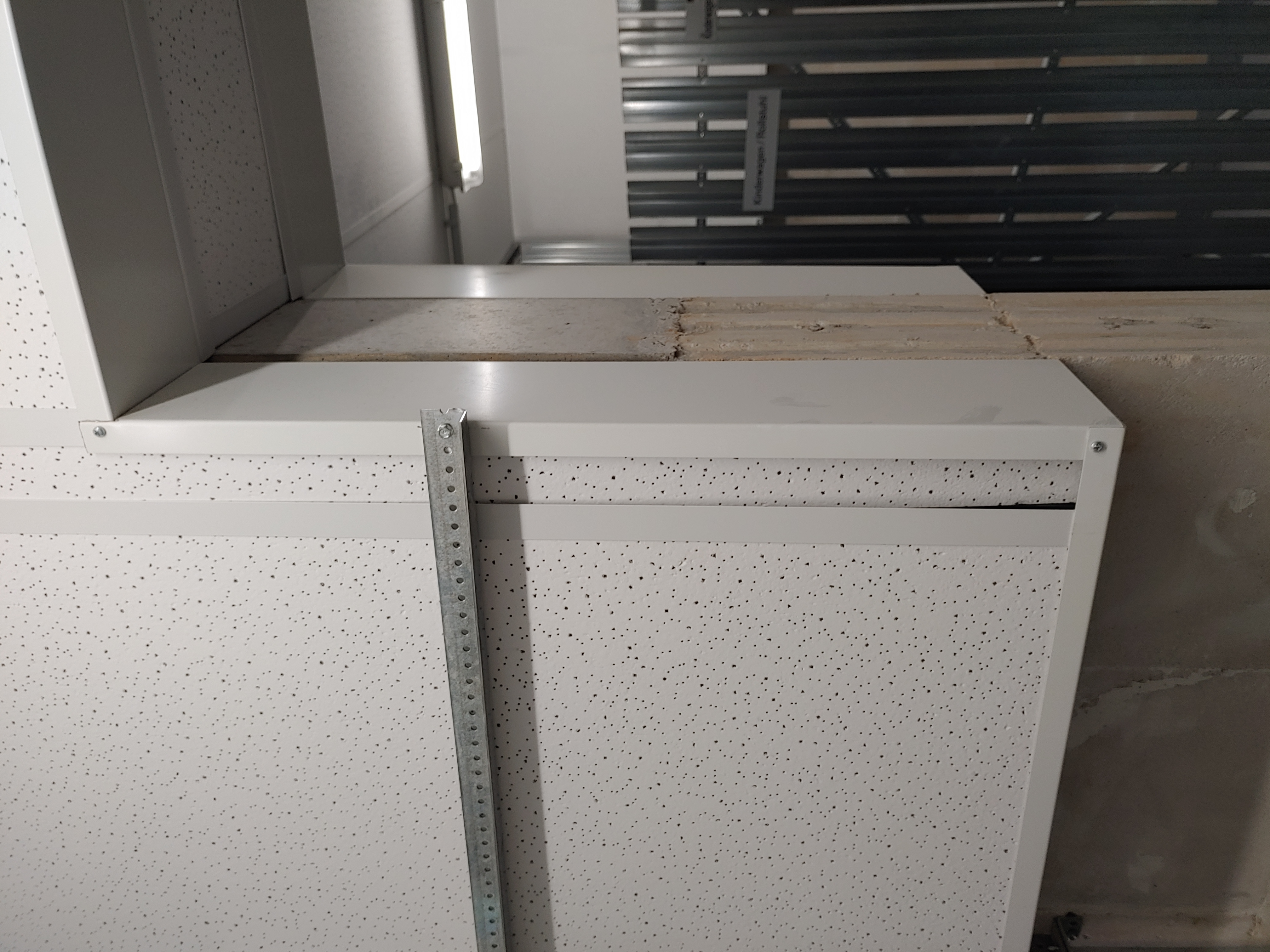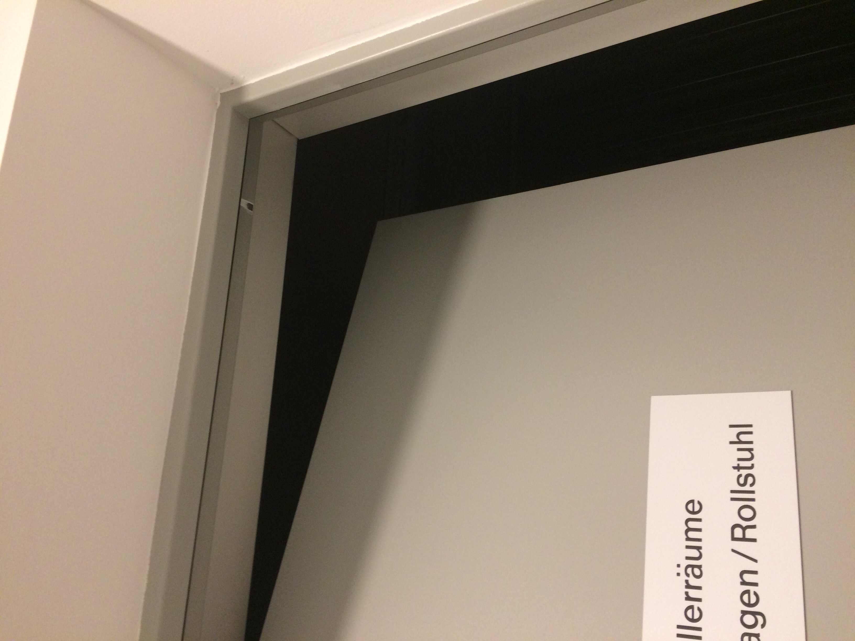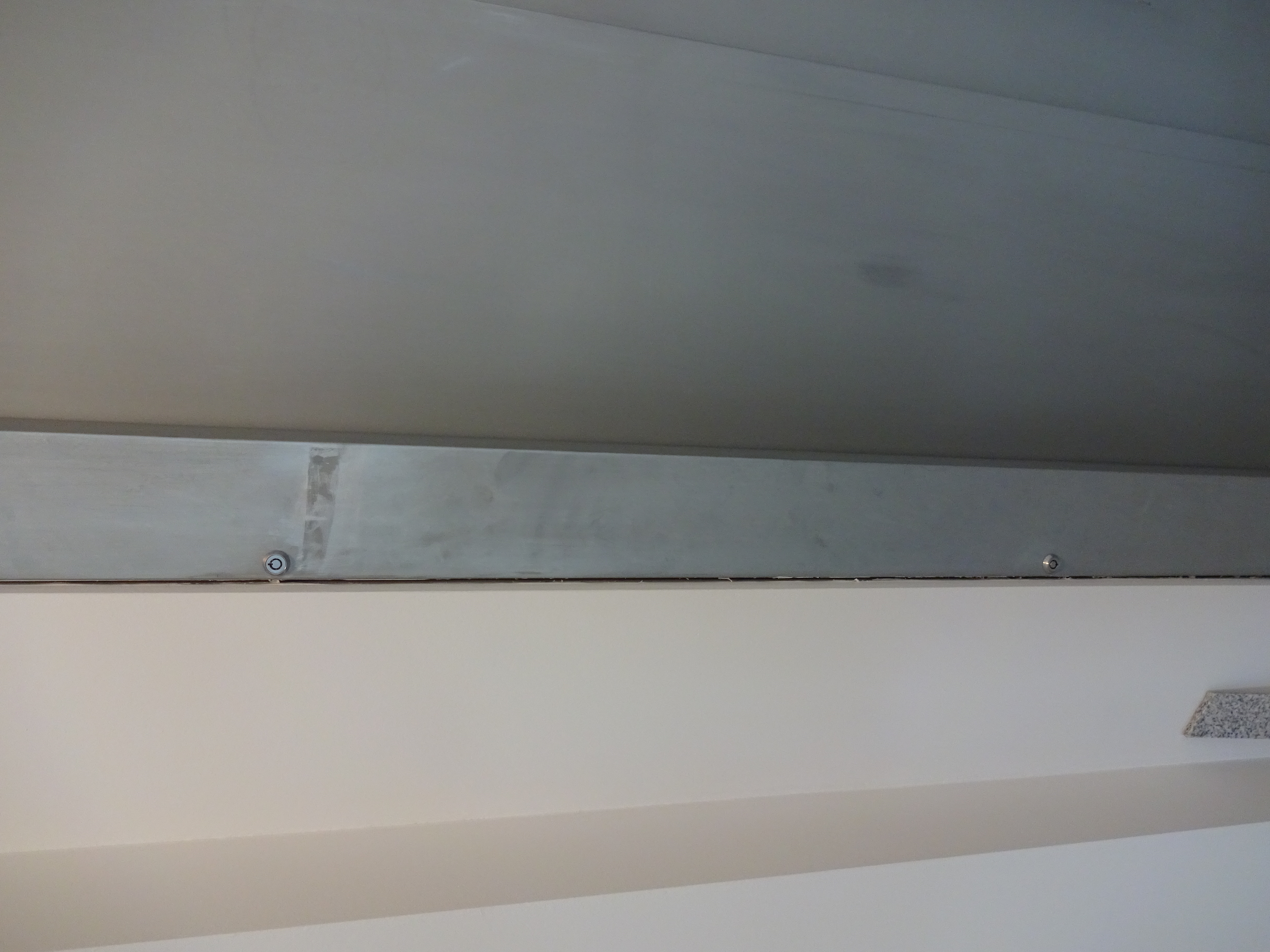 Am Rolladen in E08 ist zwischen Rolladen und Wand ein Spalt von 3 cm (s. Foto gelbe Markierung). Dieser wurde bereits bei der Abnahme des SET beanstandet und soll lt. Herr Zeiss im Zuge der GET-Übernahme bearbeitet werden.