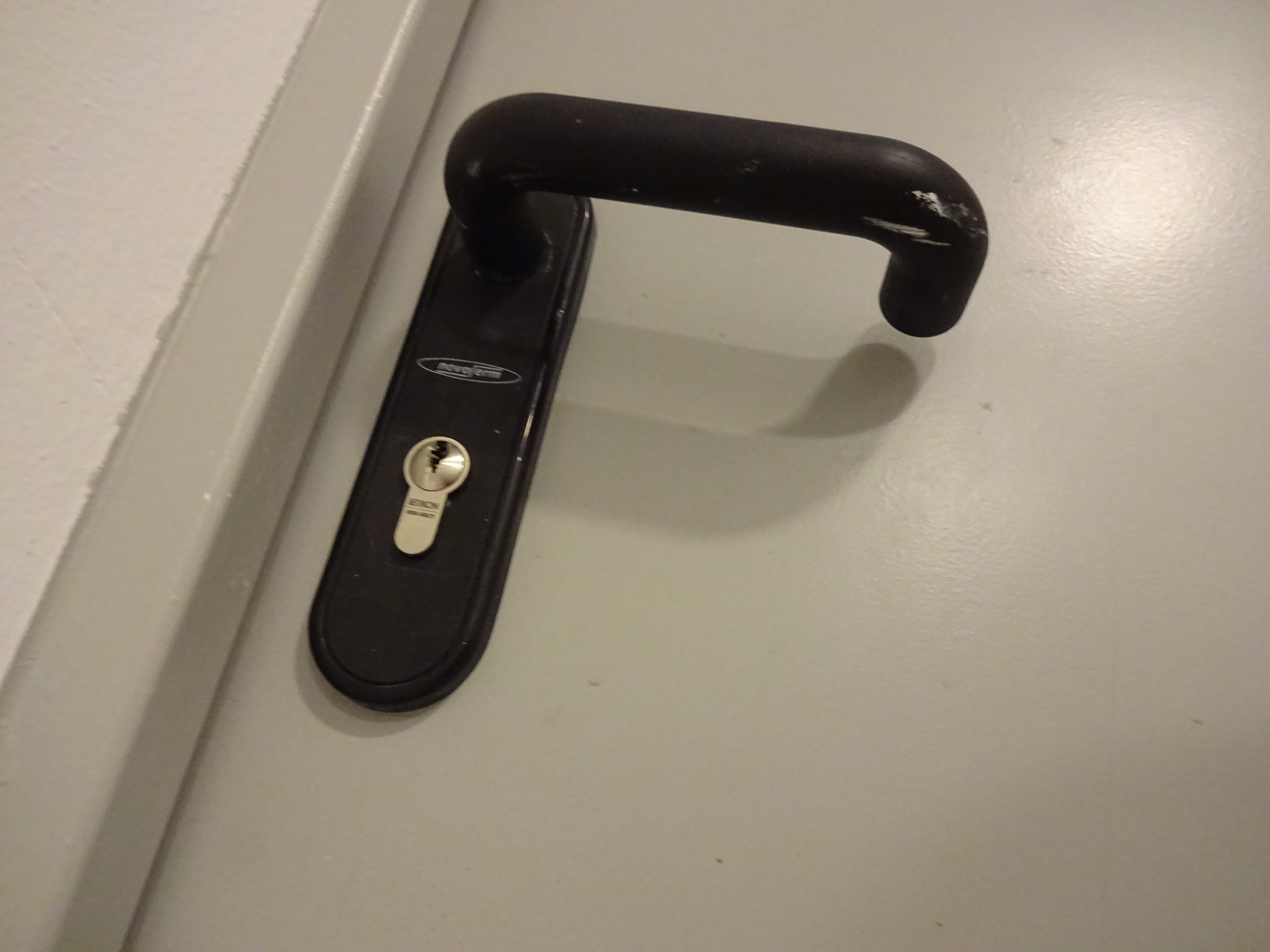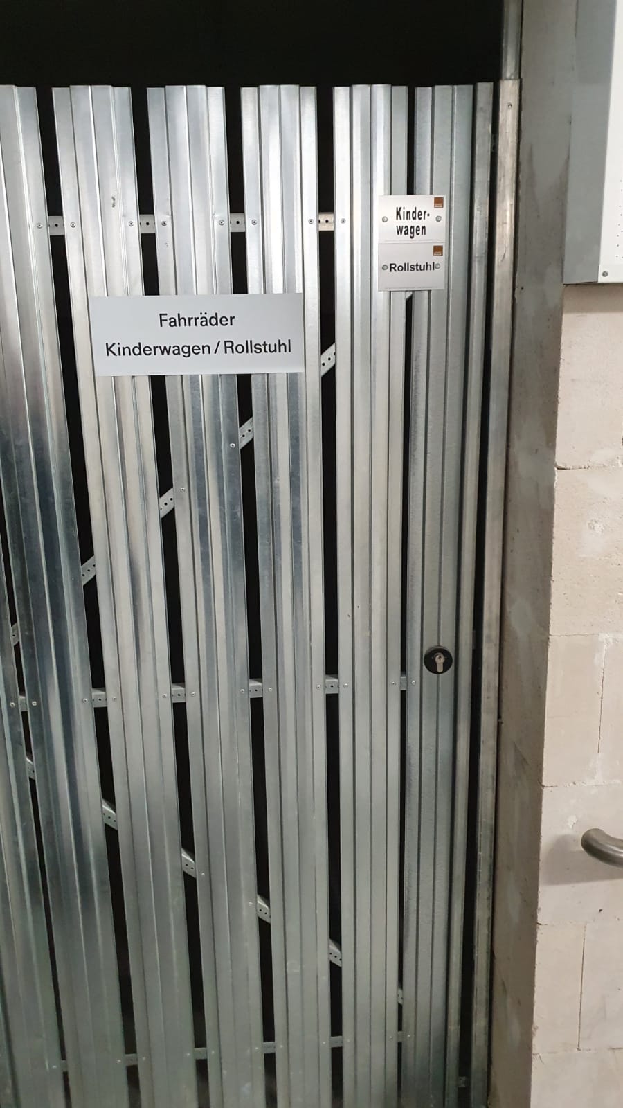 Seit Ende Juni steht neben den Eingängen im 3. Stock eine noch in Transportverpackung eingepackte Falttür dessen Verwendungszweck oder Bestimmungsort unklar ist.