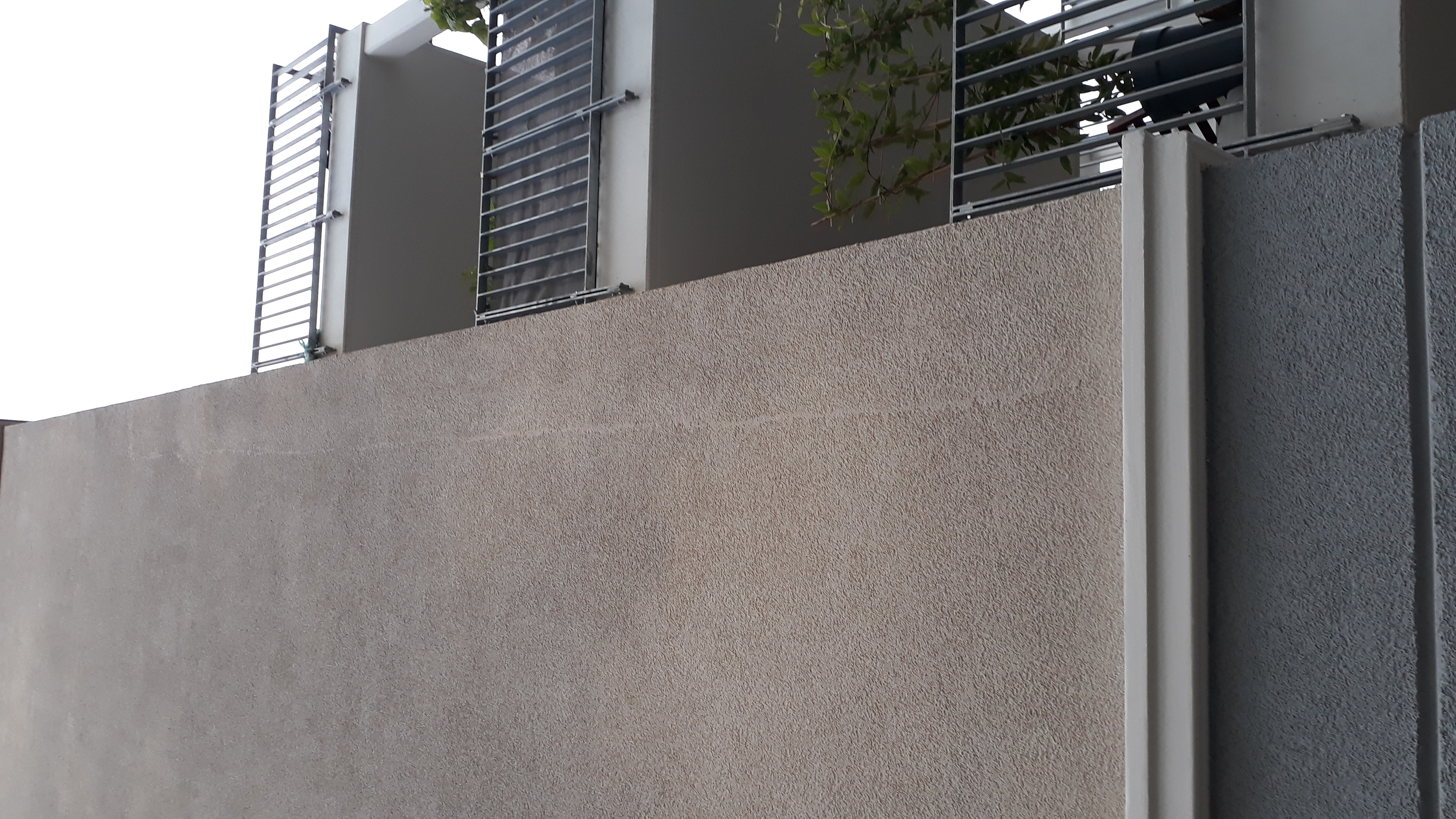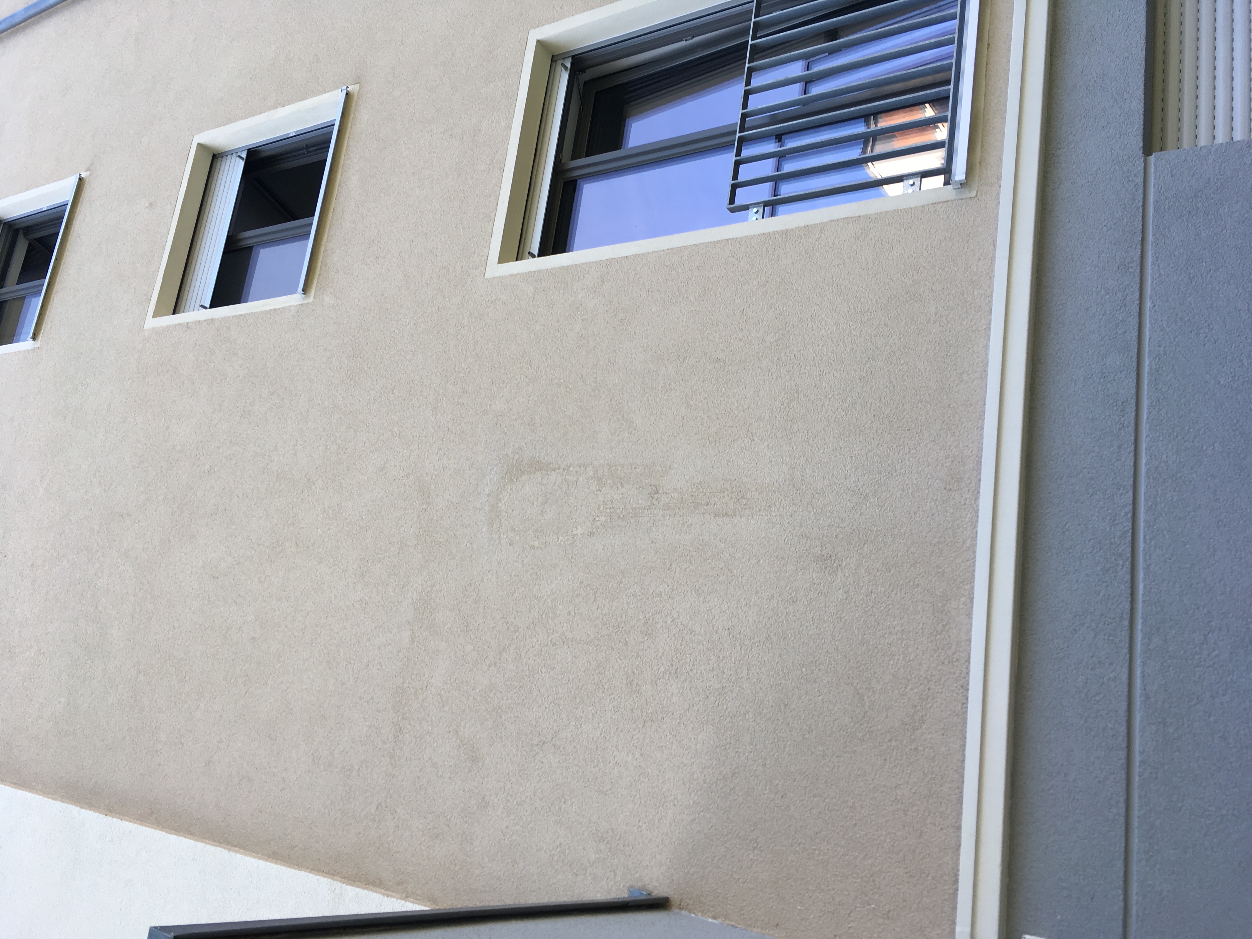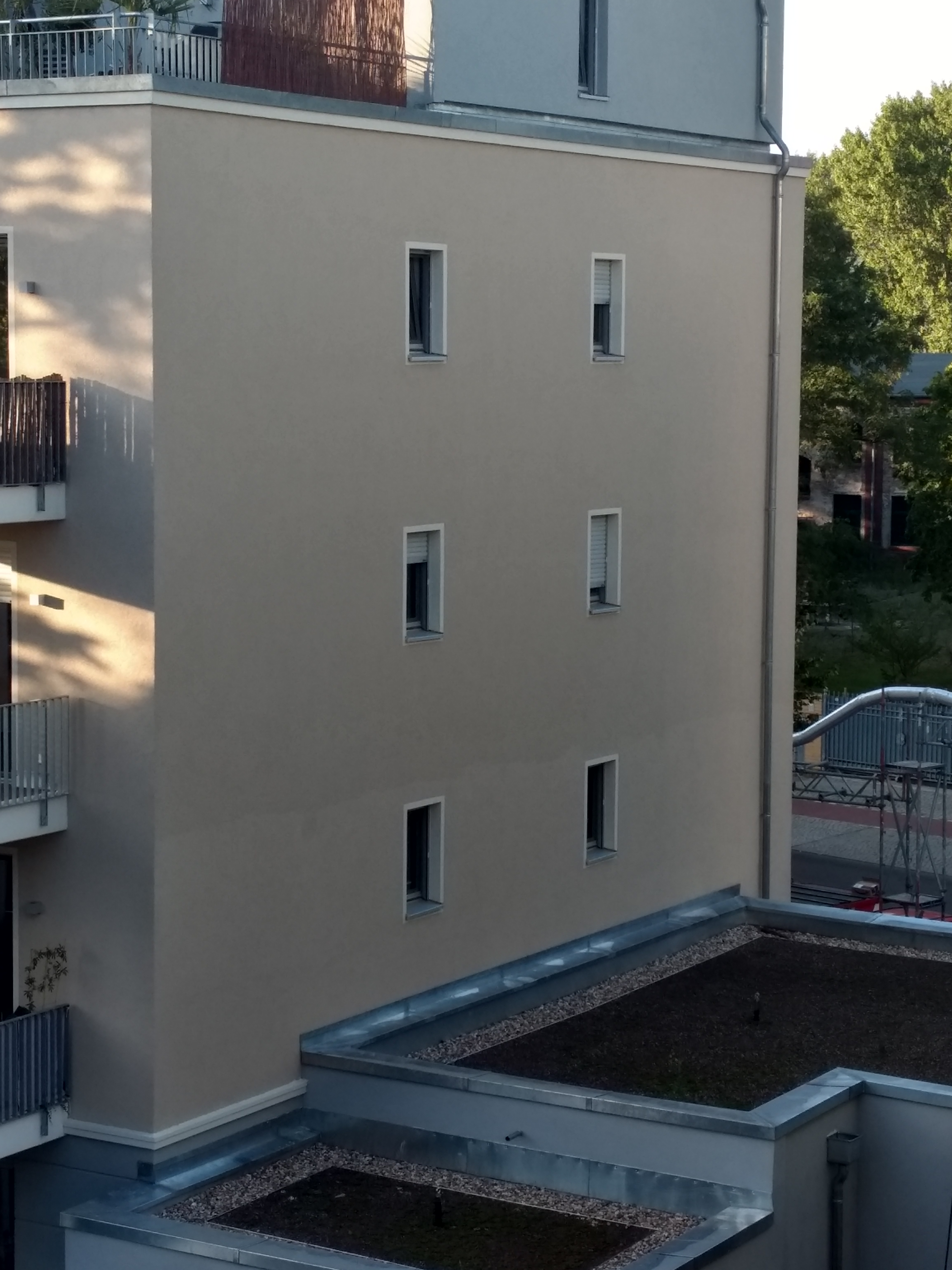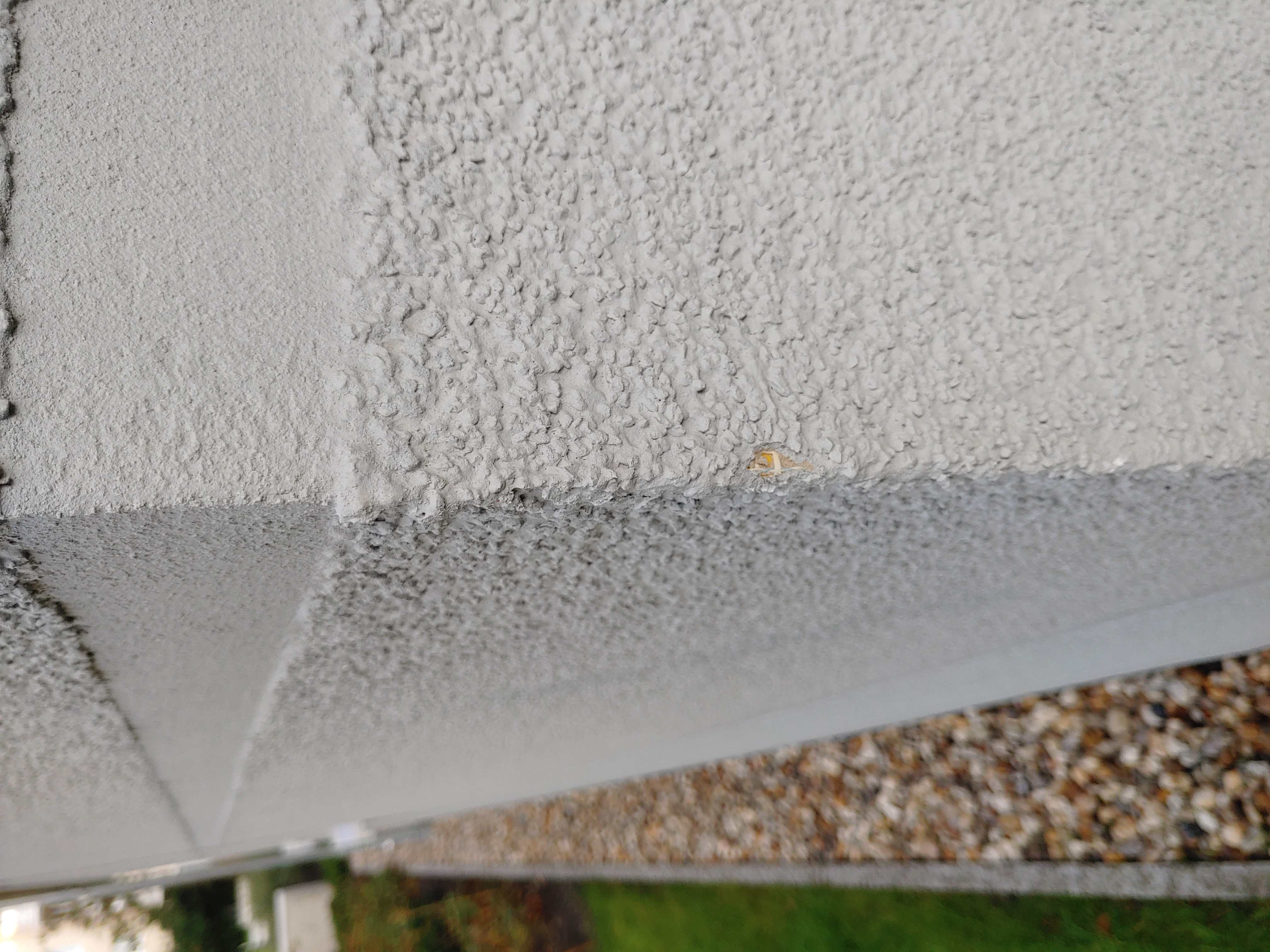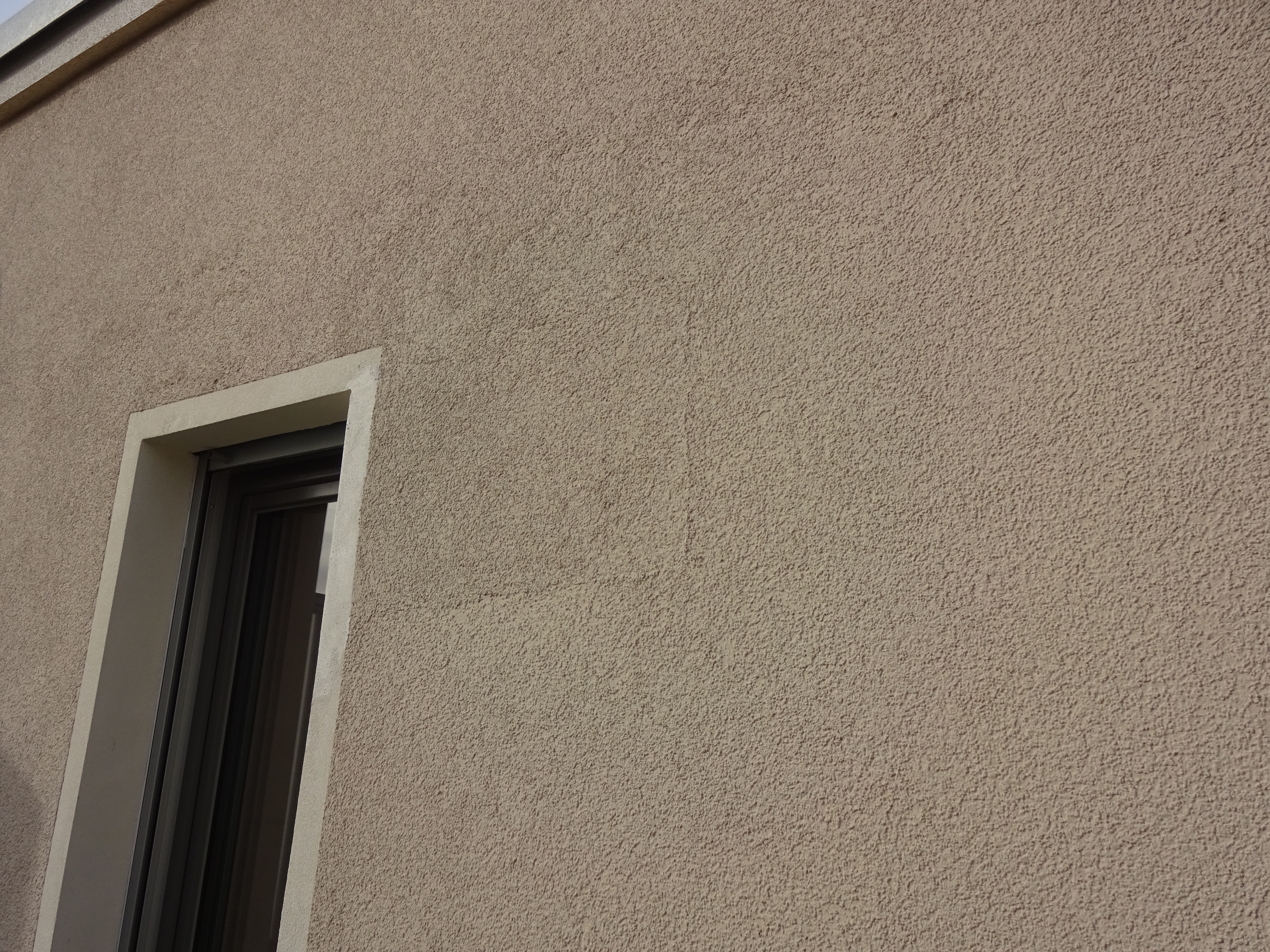 Die Farbe des Putzes an dieser nachgebesserten Stelle weicht sehr sichtbar ab.