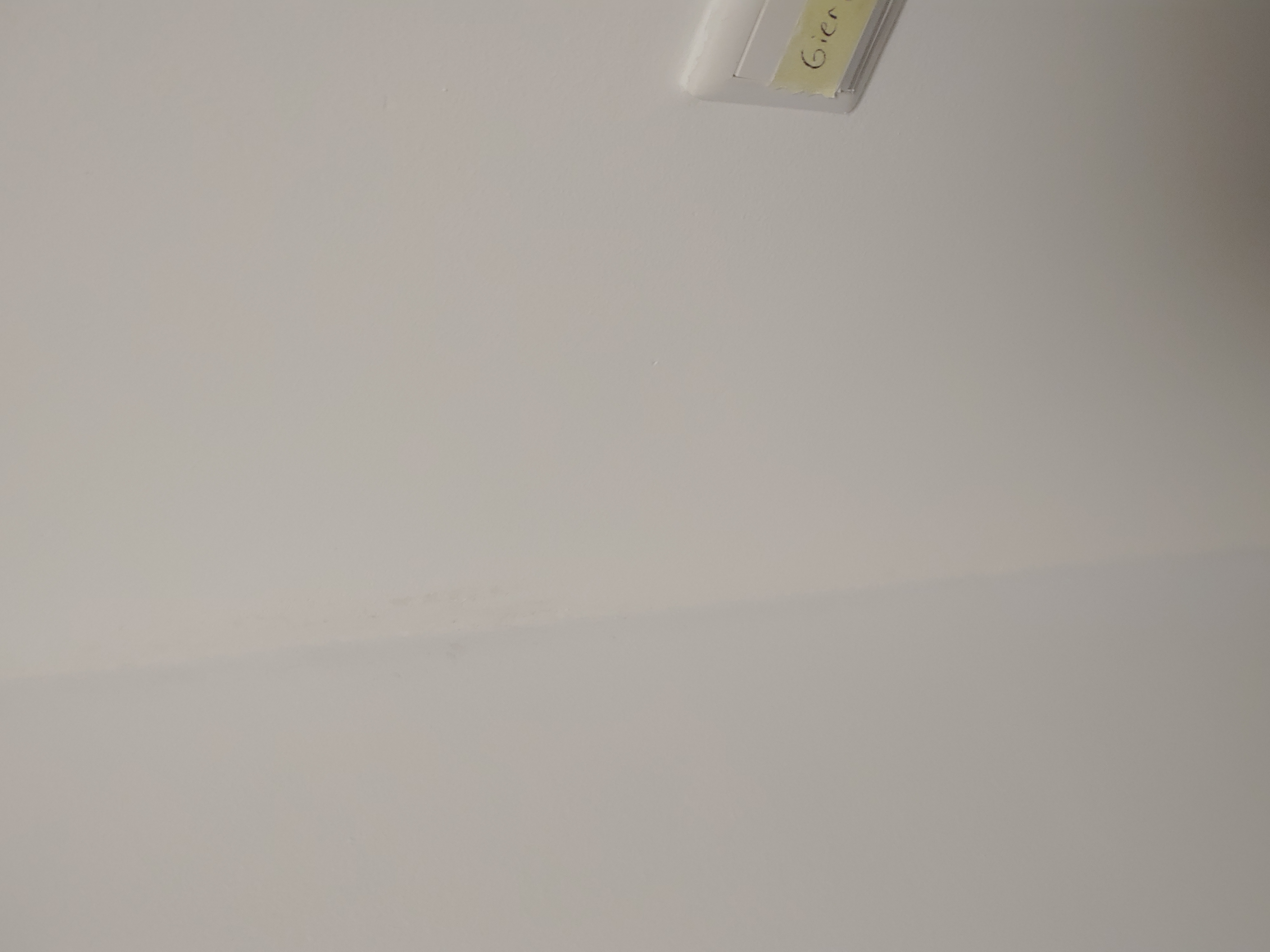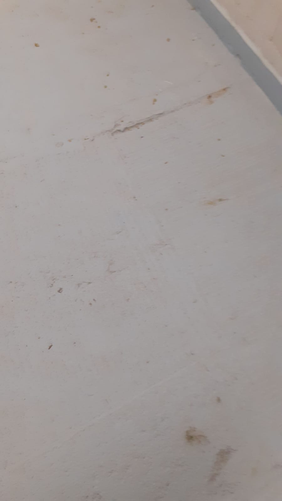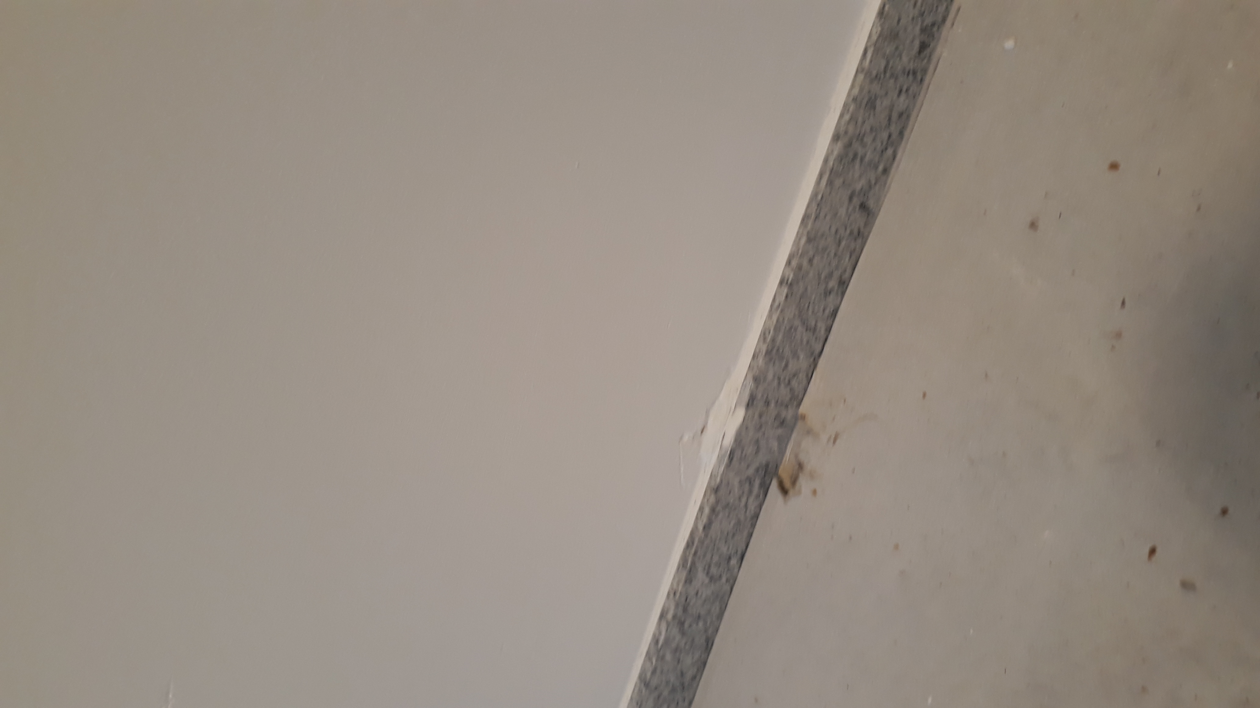 Die "Bordüre" wurde zwar schon nachgestrichen, ist aber immer noch stark verschmutzt. Von unten wurde die Bordüre an vielen Stellen nur mangelhaft gestrichen (siehe letztes Foto).