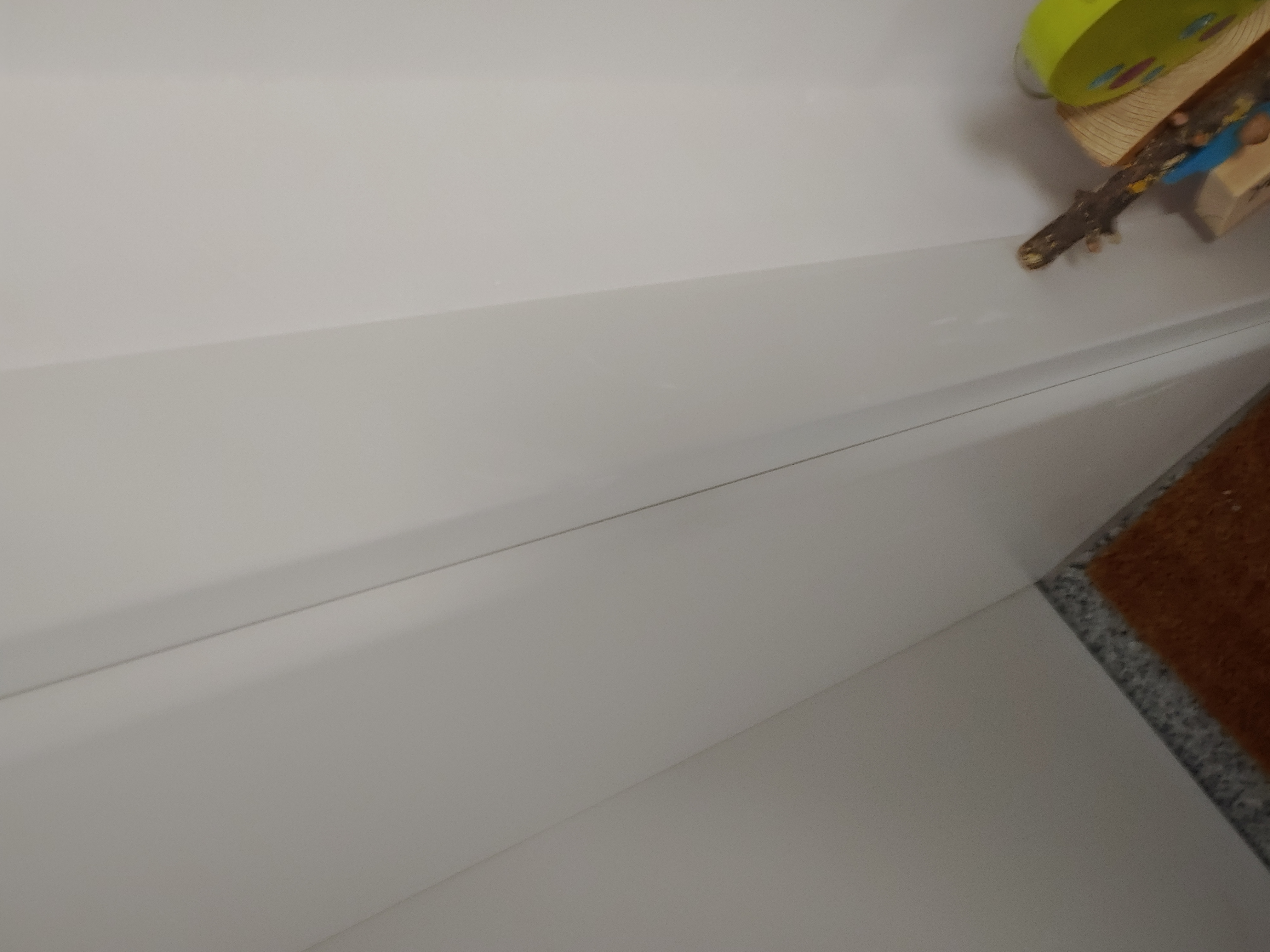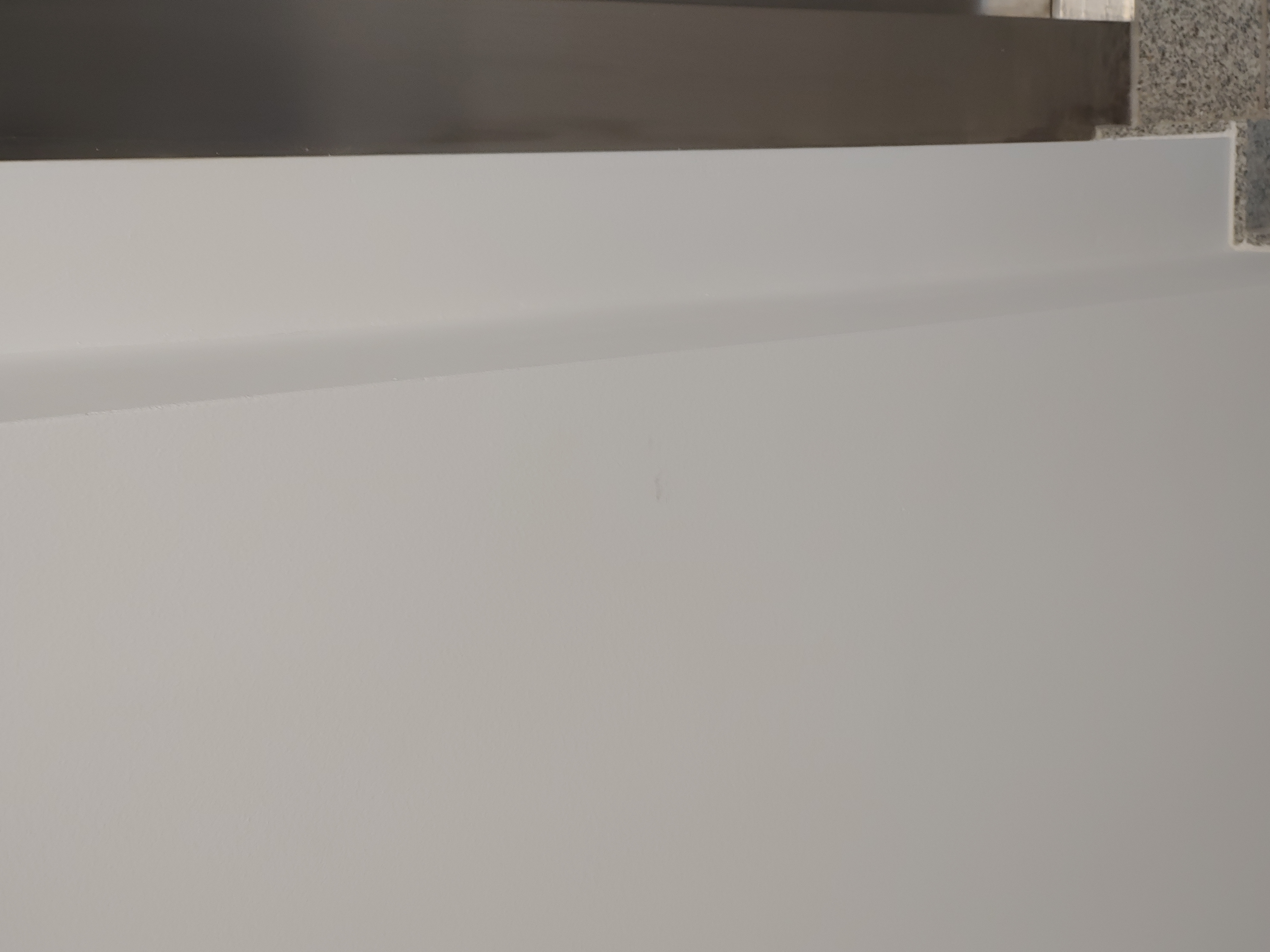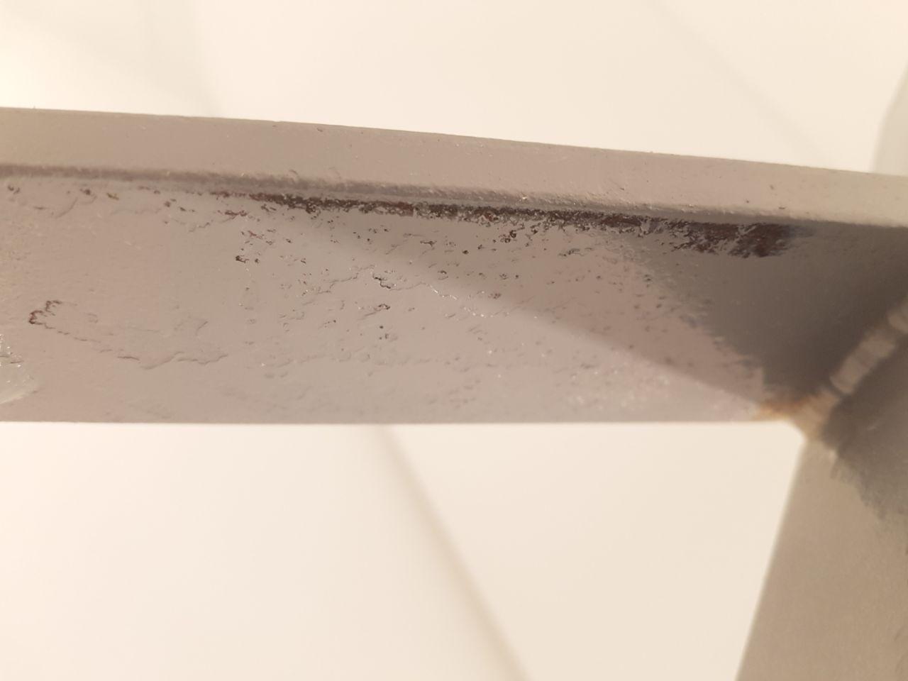 Die "Bordüre" wurde zwar schon nachgestrichen, ist aber immer noch stark verschmutzt. Von unten wurde die Bordüre an vielen Stellen nur mangelhaft gestrichen (siehe letztes Foto).