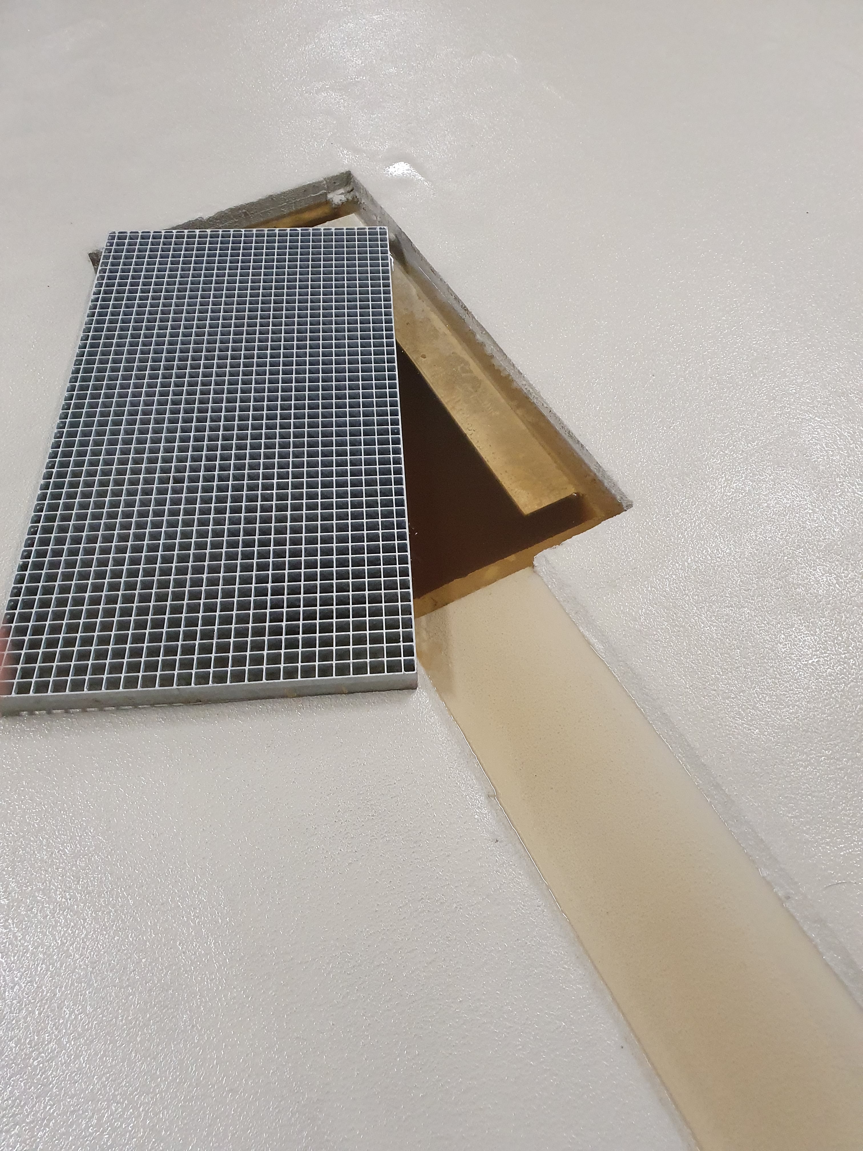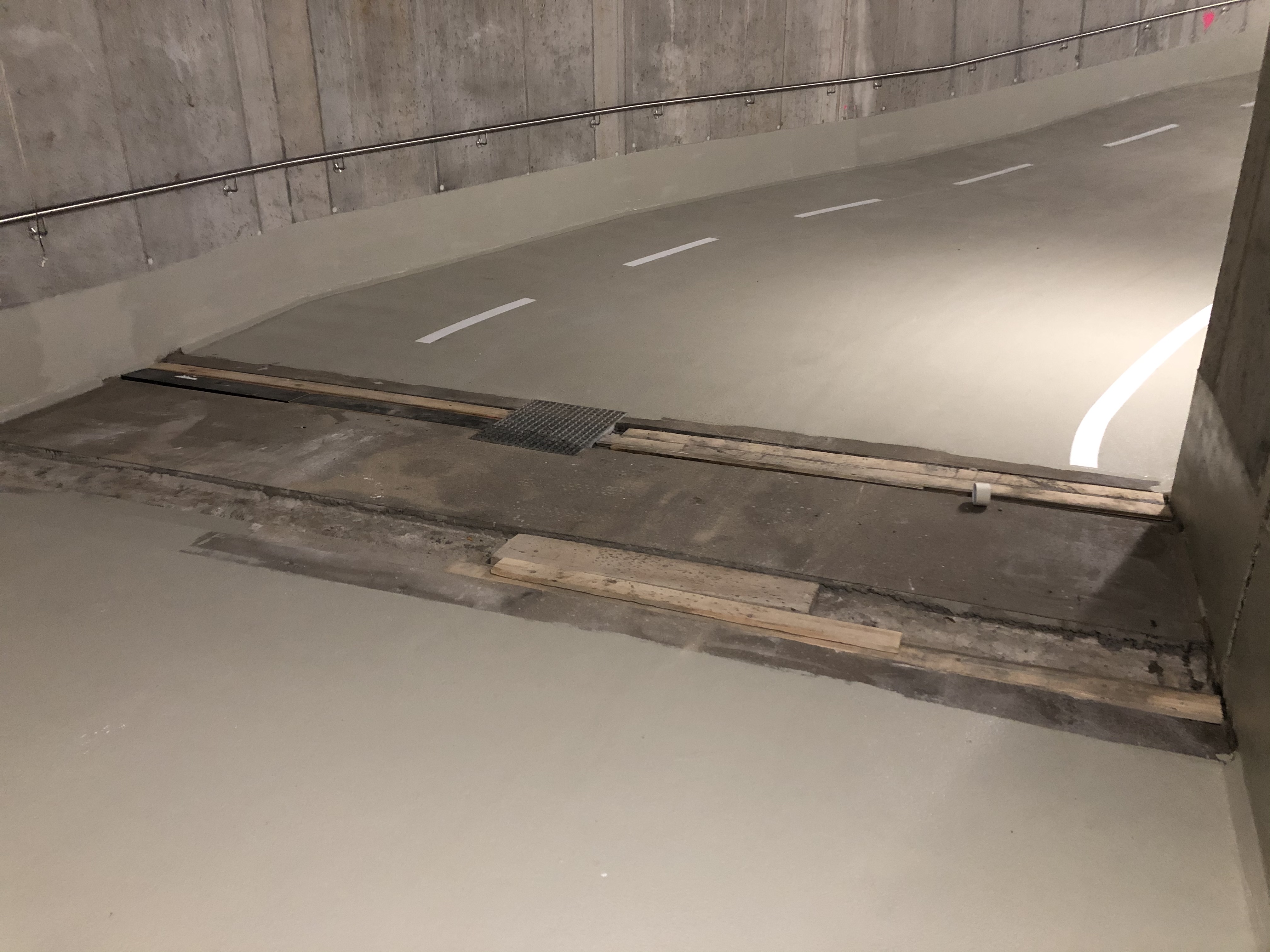 Der Boden ist nicht glatt durchgehend gemacht und der Ablauf stimmt nicht. So kann man da nicht normal drüberfahren.