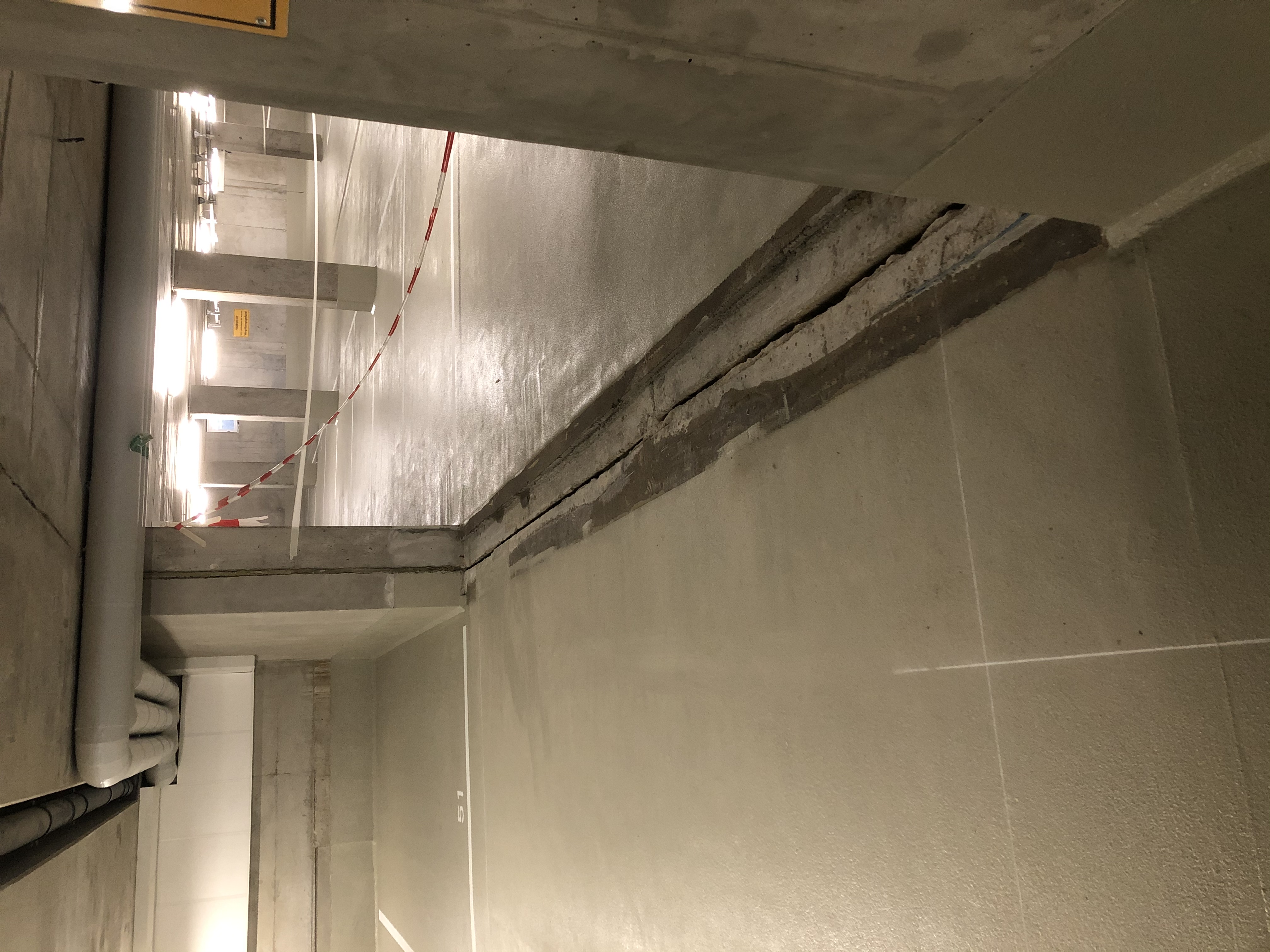 in der Decke der Tiefgarage einfahrt sind lange Risse zu sehen diese wurden mit der Dämmung überdeckt