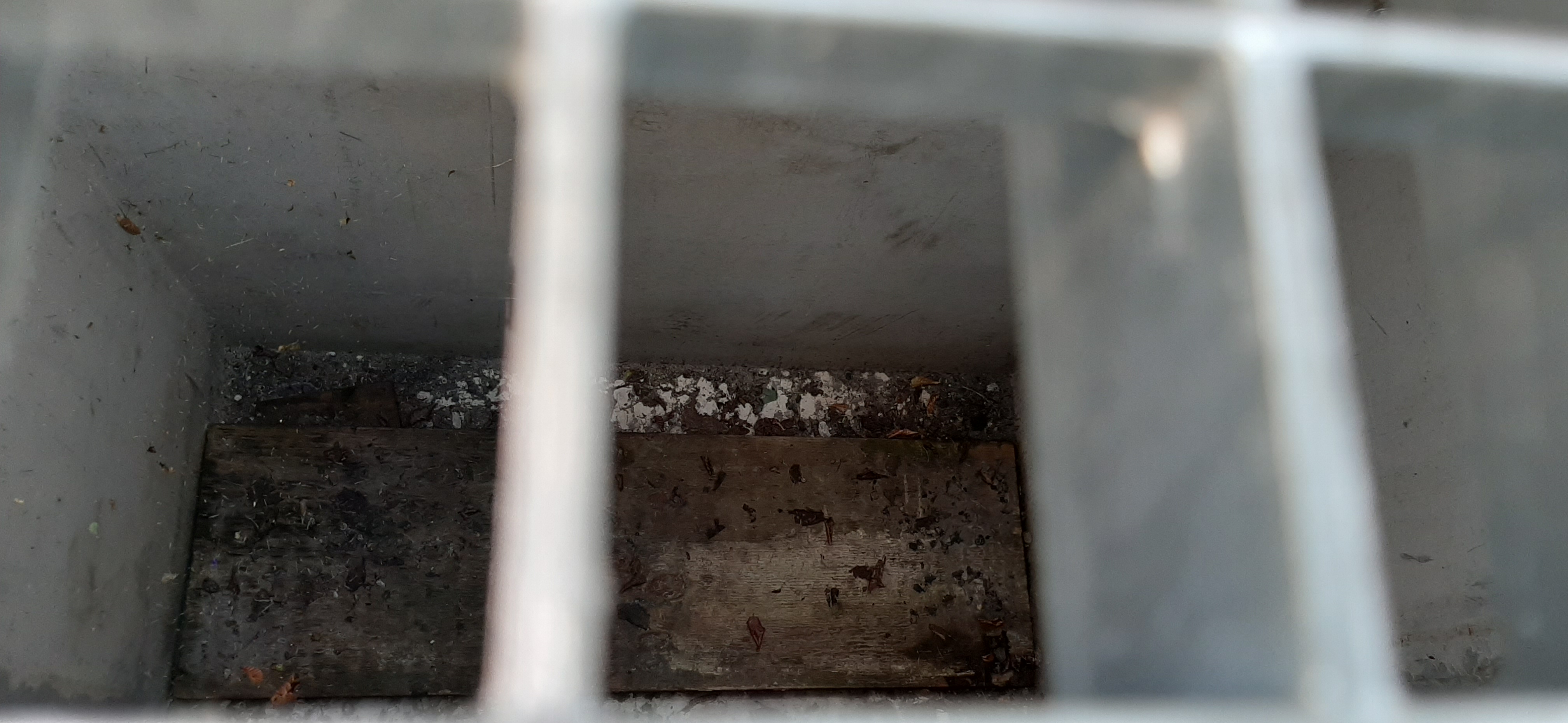 Die Schächte müssen vor der Abnahme gereinigt und auf Funktionsfähigkeit überprüft werden. Verschmutzung und Verstopfung durch Bauschutt und Laub, etc. Wassereintritt / Überlauf bereits bei normalem Regen. Verarbeitung von oben (Innenhof) nicht ok (Betoneinfassung zu tief, Erdreich rutscht direkt durch die Gitter, Wasser von Wiese und Wegen läuft ungehindert ein. Übergelaufenes Wasser bleibt in Rinne stehen.
